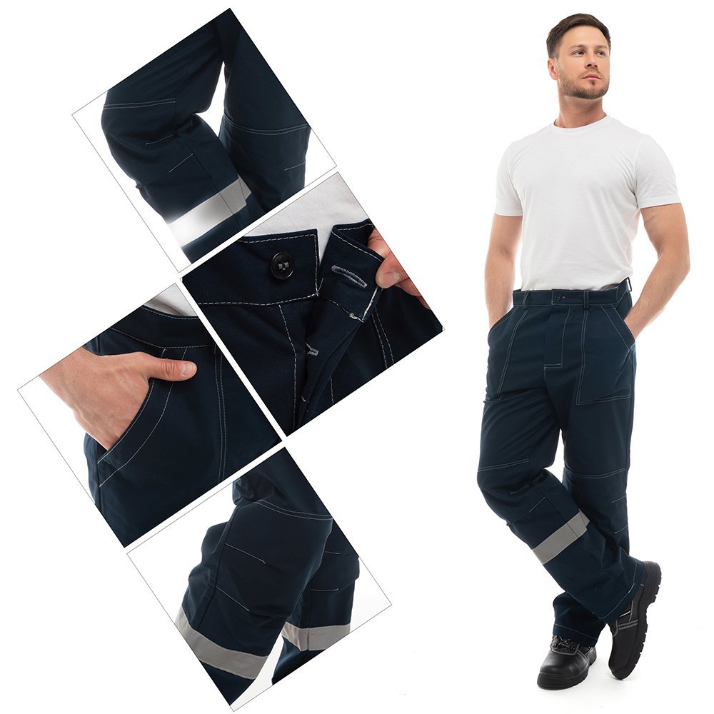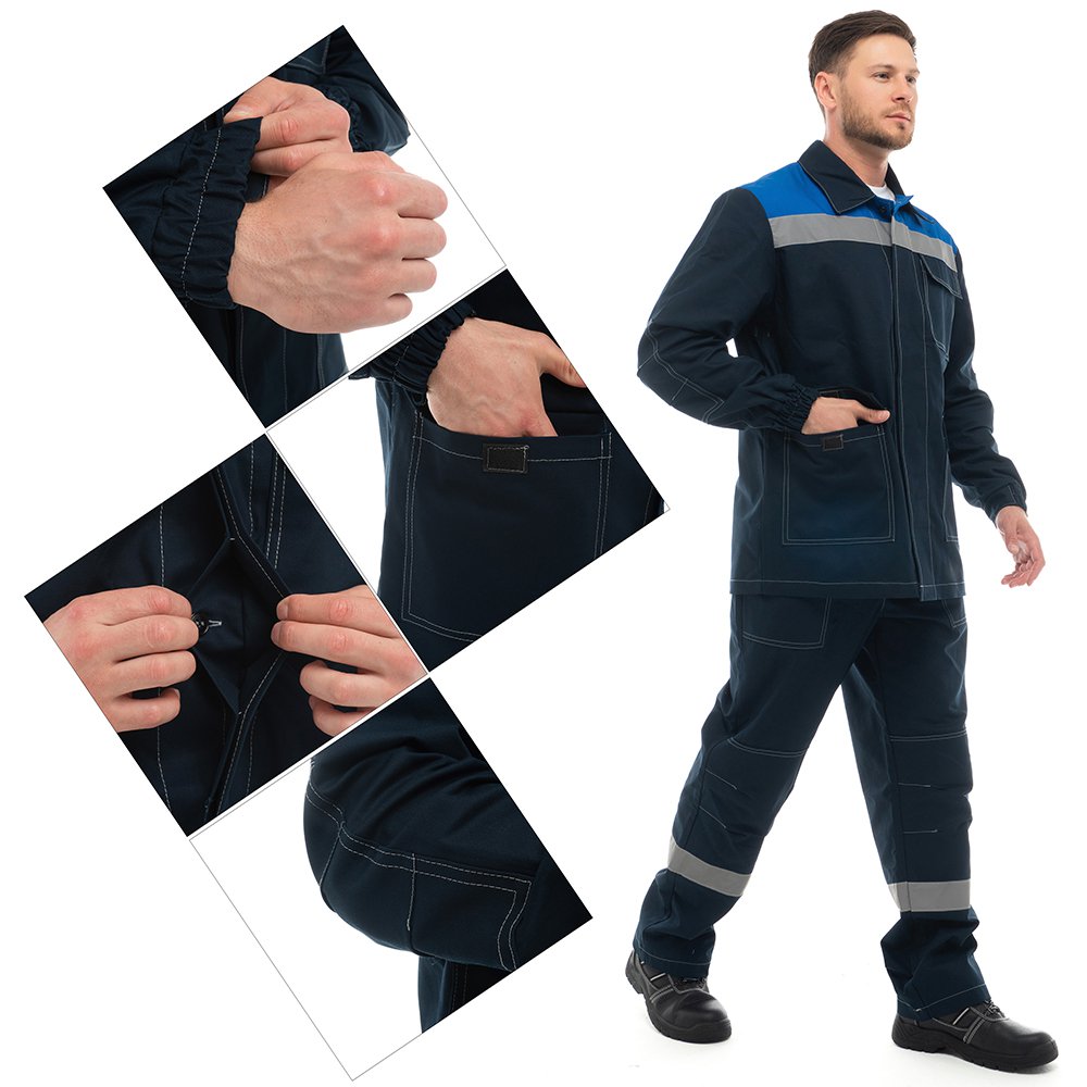 Для безопасной работы сотрудника в местах с плохим освещением на костюме Специалист предусмотрена светоотражающая полоса шириной 50 мм.