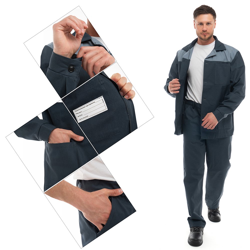 Костюм Специалист изготовлен в соответствии с ГОСТ и включает 2 предмета: куртка, брюки