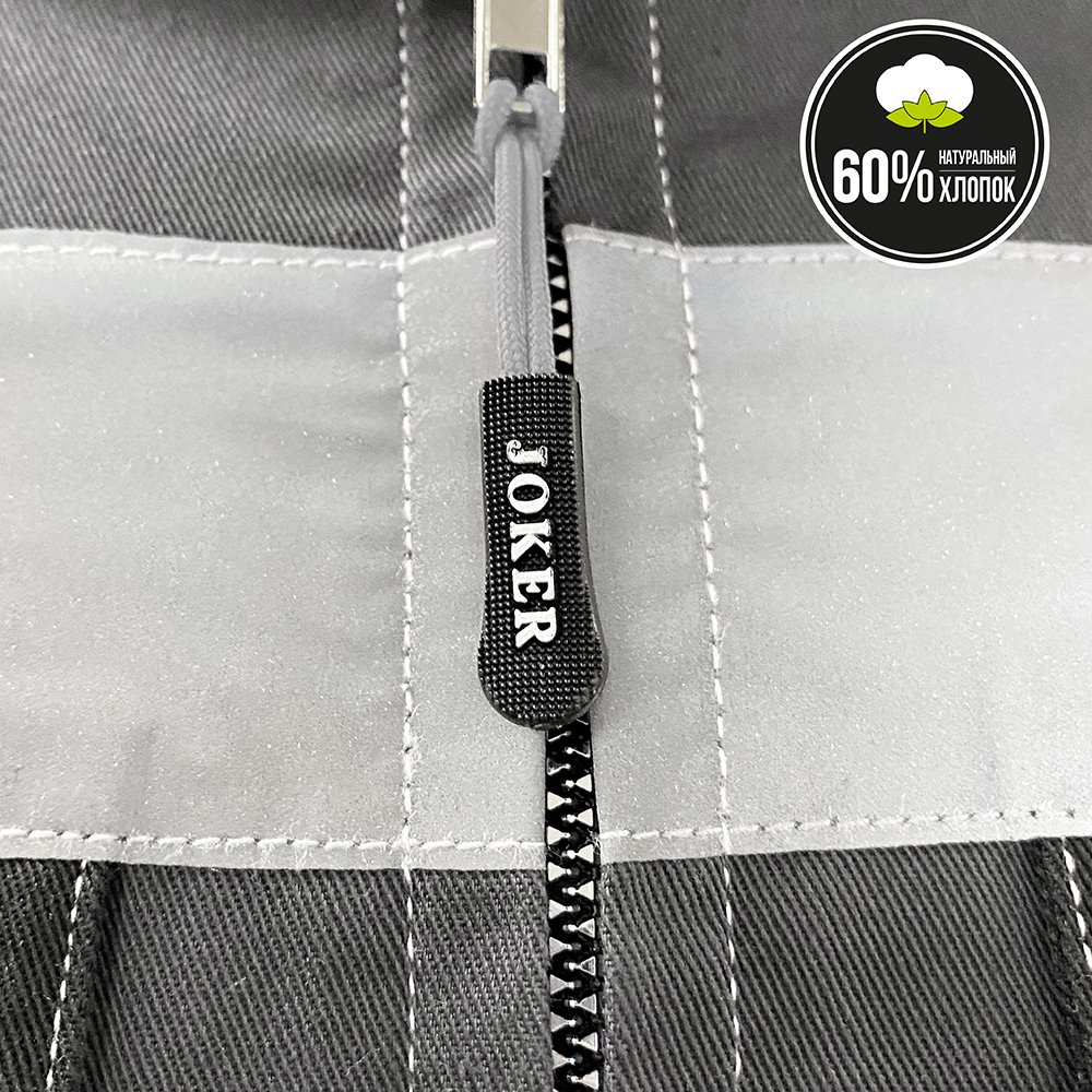 Костюм с контрастной отсрочкой, с застежкой на закрытую молнию. Молния пластиковая, повышенной прочности, с металлическим бегунком, «мелкий зуб», цвет «серебро».