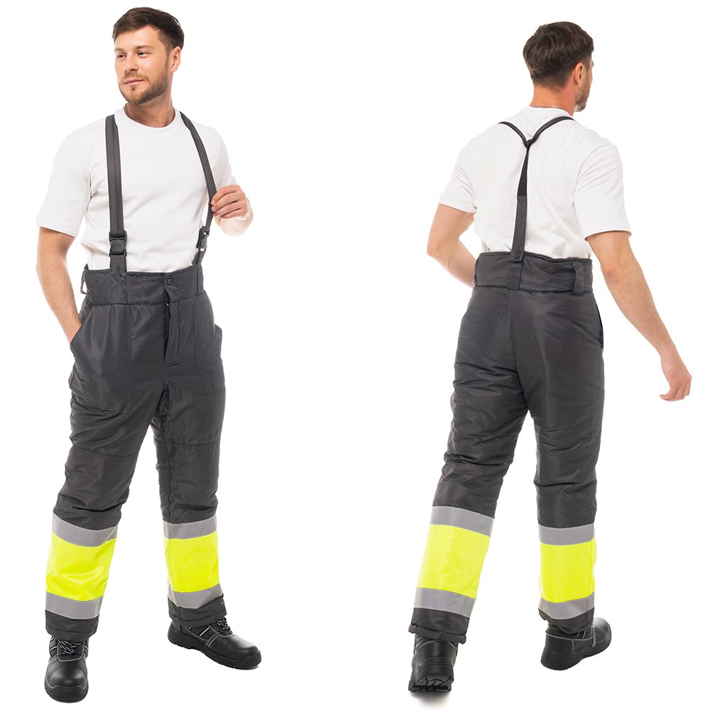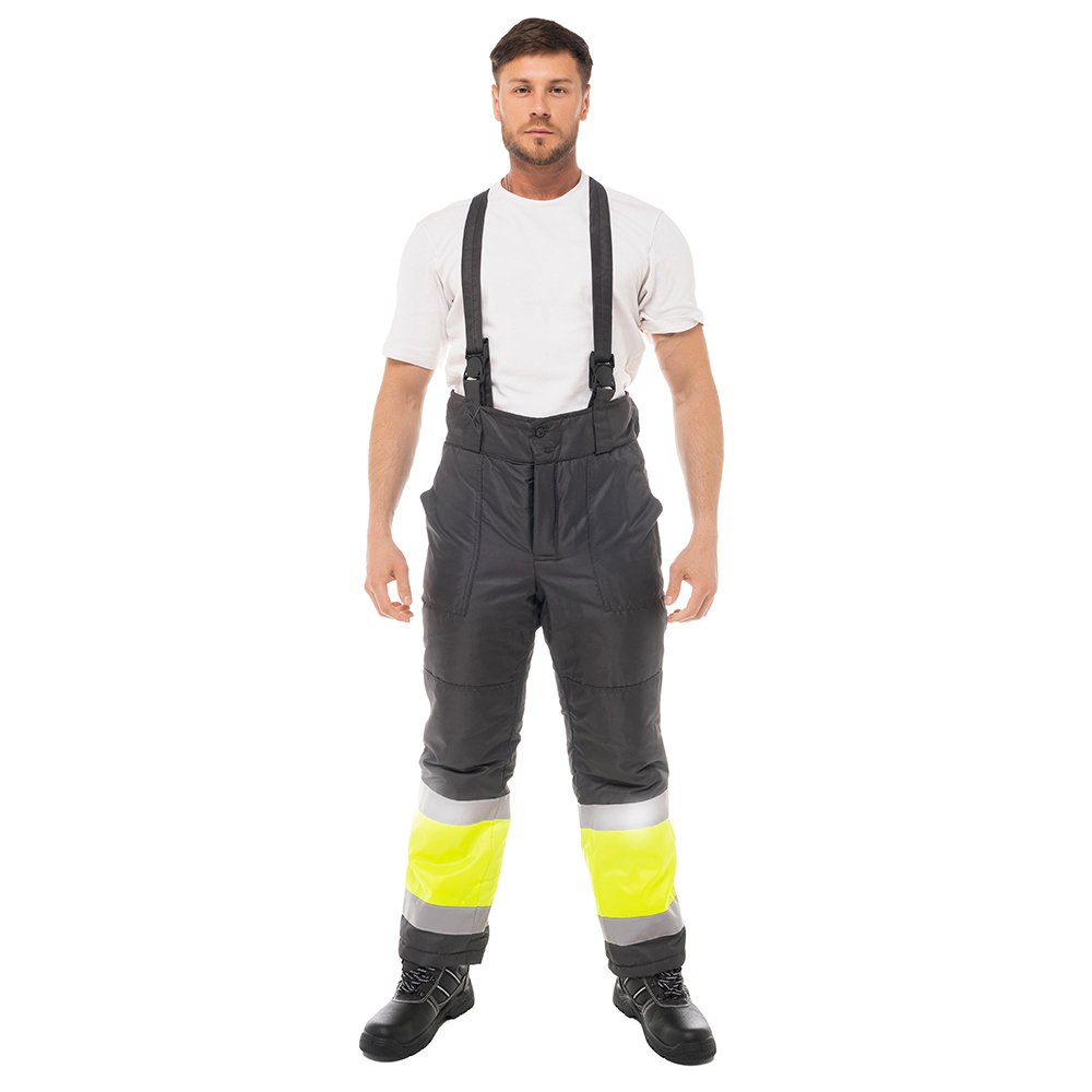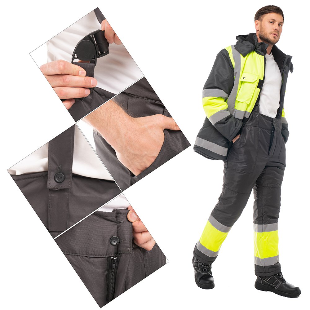 - Для безопасной работы в местах с плохим освещением предусмотрены световозвращающая лента шириной 50 мм и контрастная вставка.