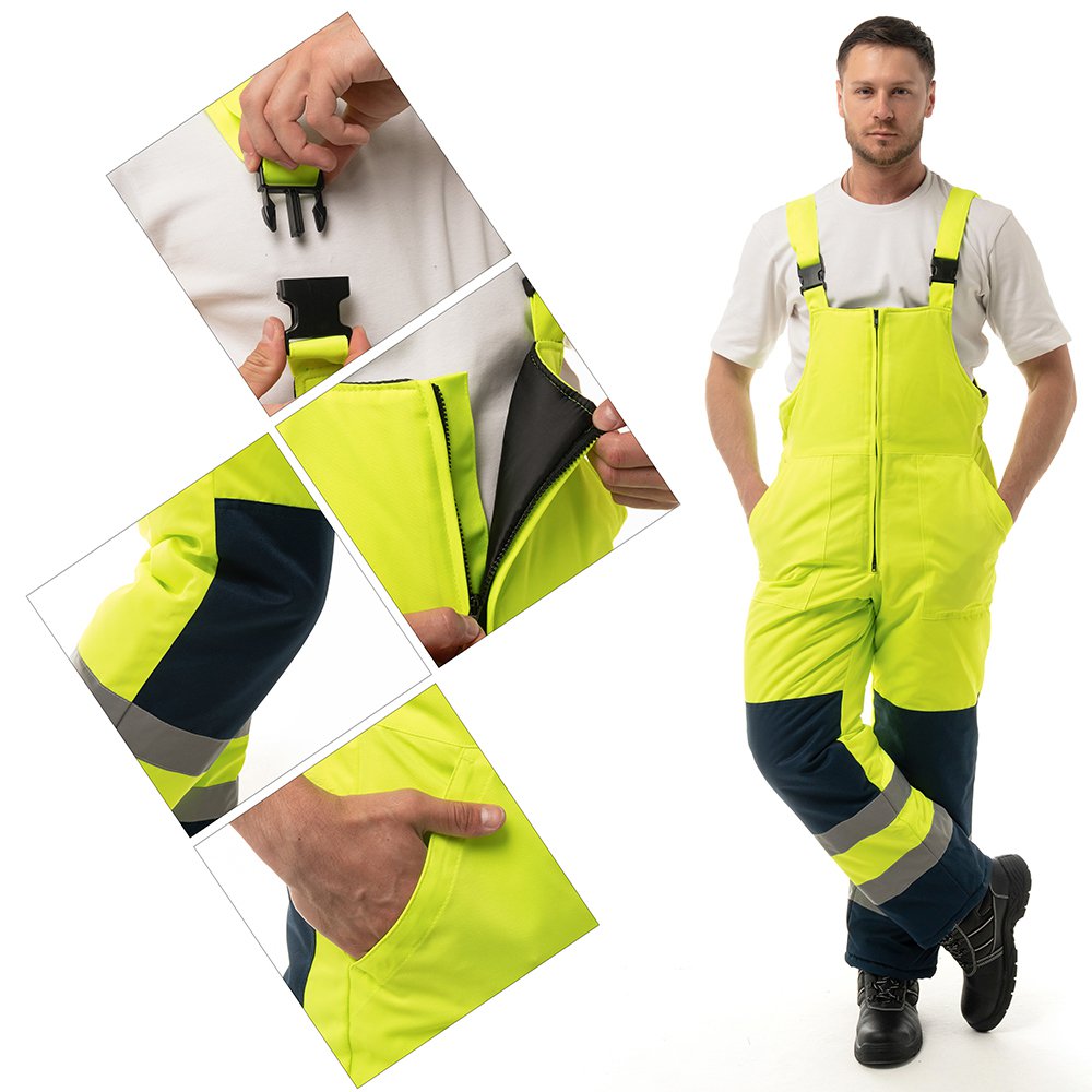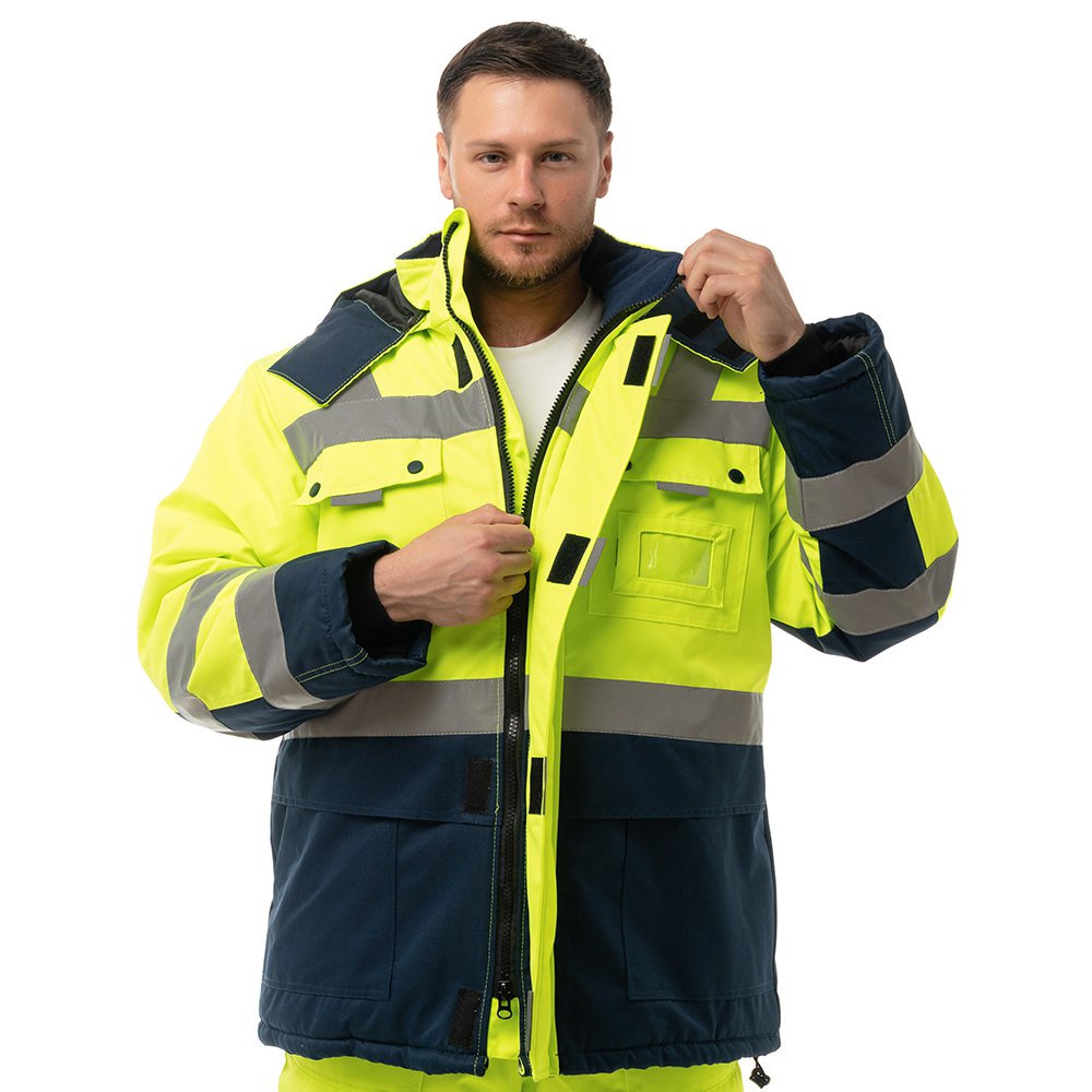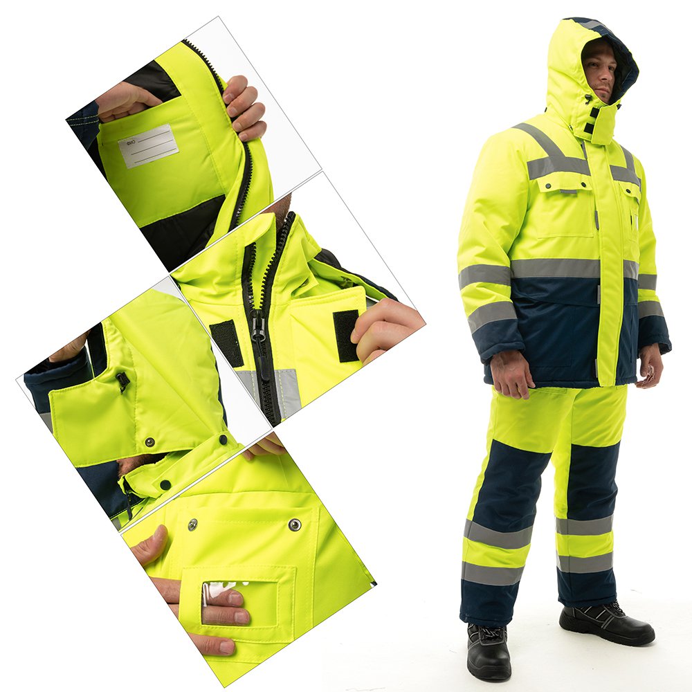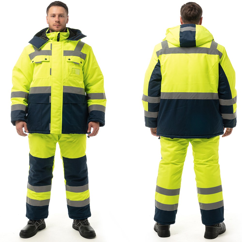 - Для безопасной работы сотрудника в местах с плохим освещением на костюме предусмотрена световозвращающая лента в 2 ряда.