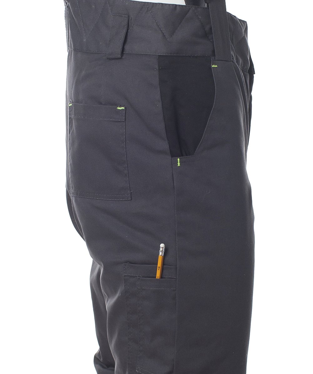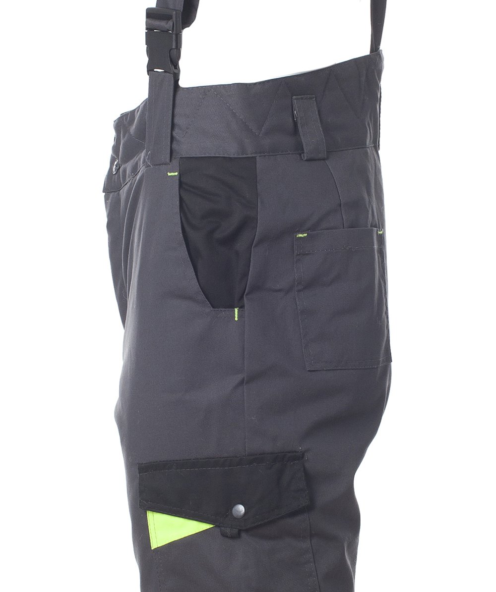 - На брюках съёмные бретели, пояс закрывается на пуговицы со шлевками.