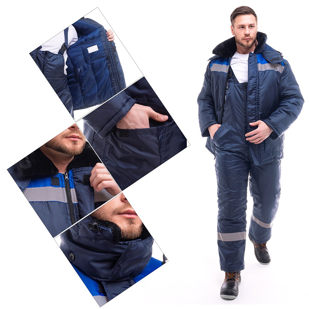 Зимний рабочий костюм Стандарт представляет собой надежное решение для холодного времени года, состоит из куртки с полукомбинезоном