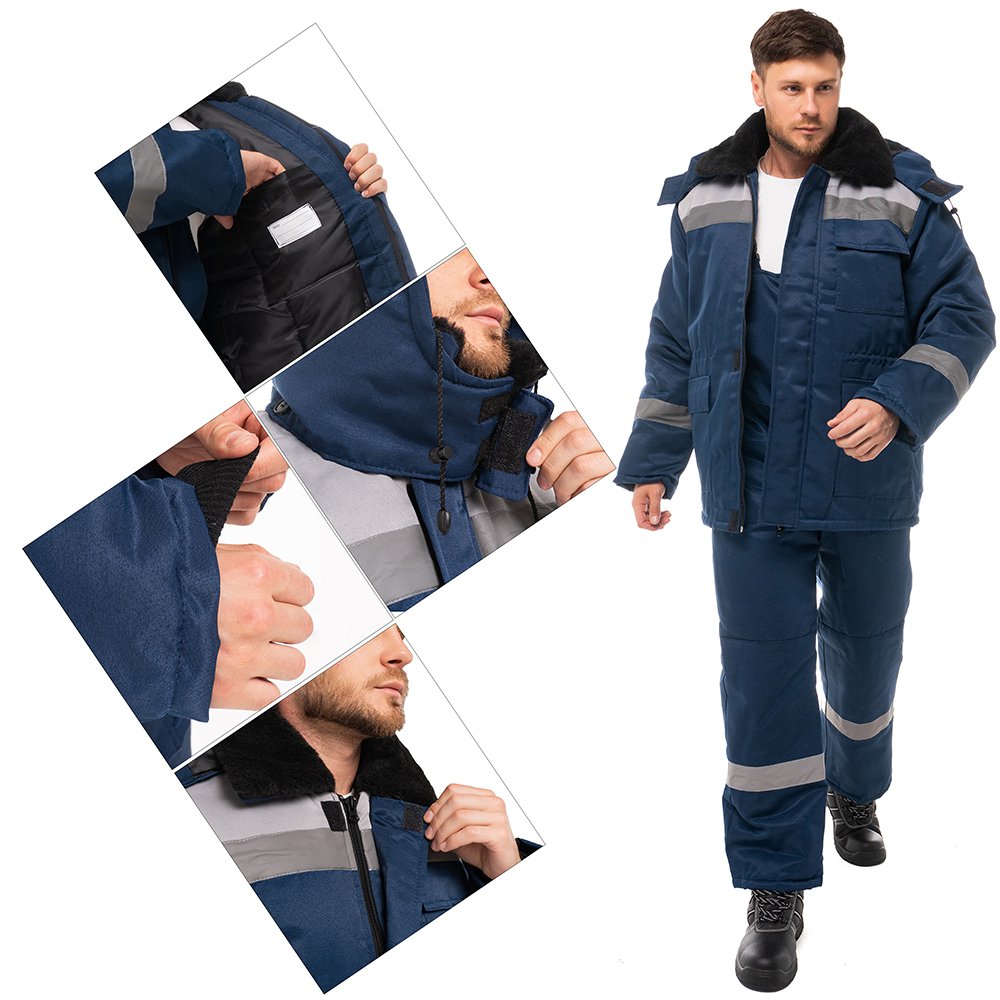 Зимний рабочий костюм Стандарт Люкс представляет собой надежное решение для холодного времени года, состоит из куртки с полукомбинезоном