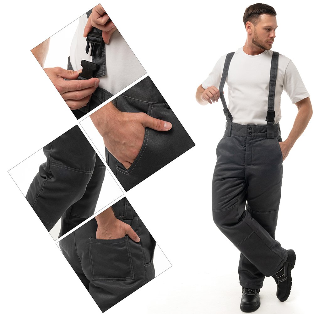 - На брюках расположены съемные бретели с утепленной высокой спинкой.