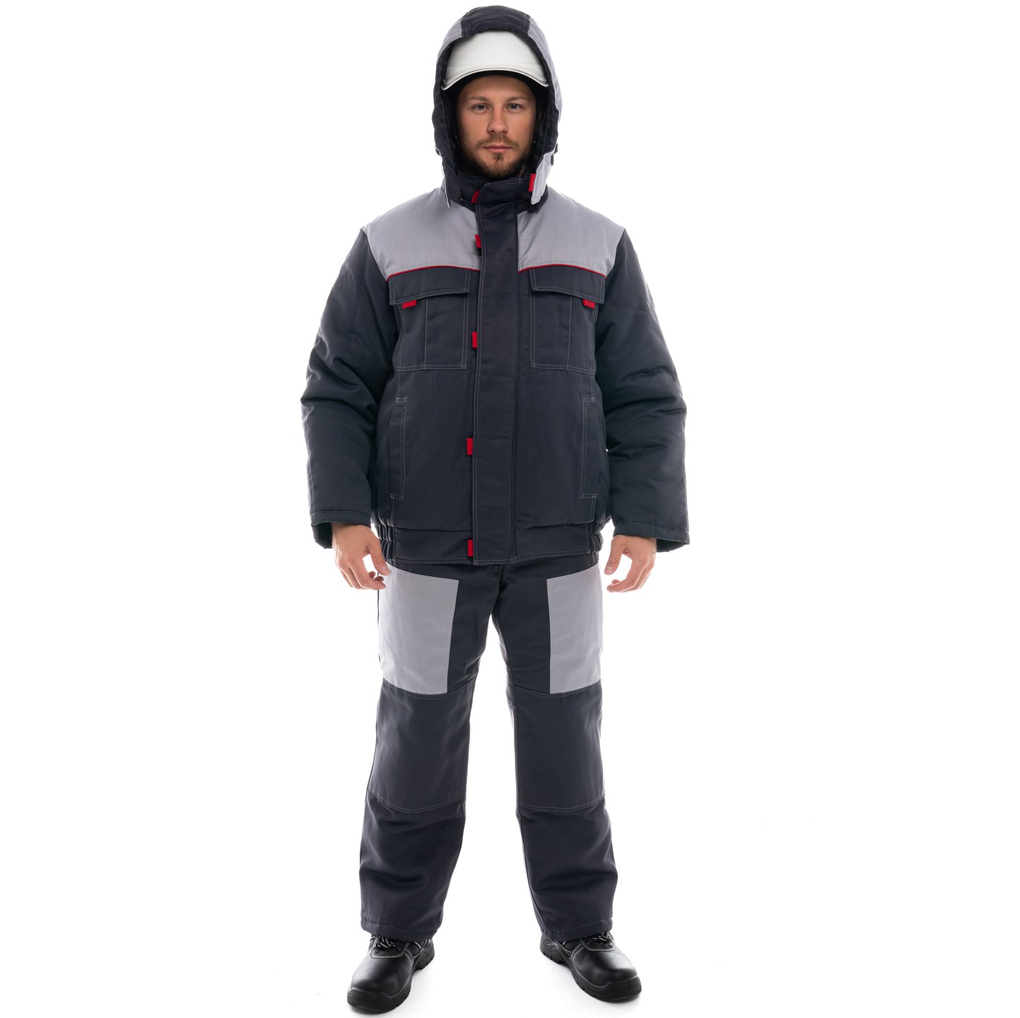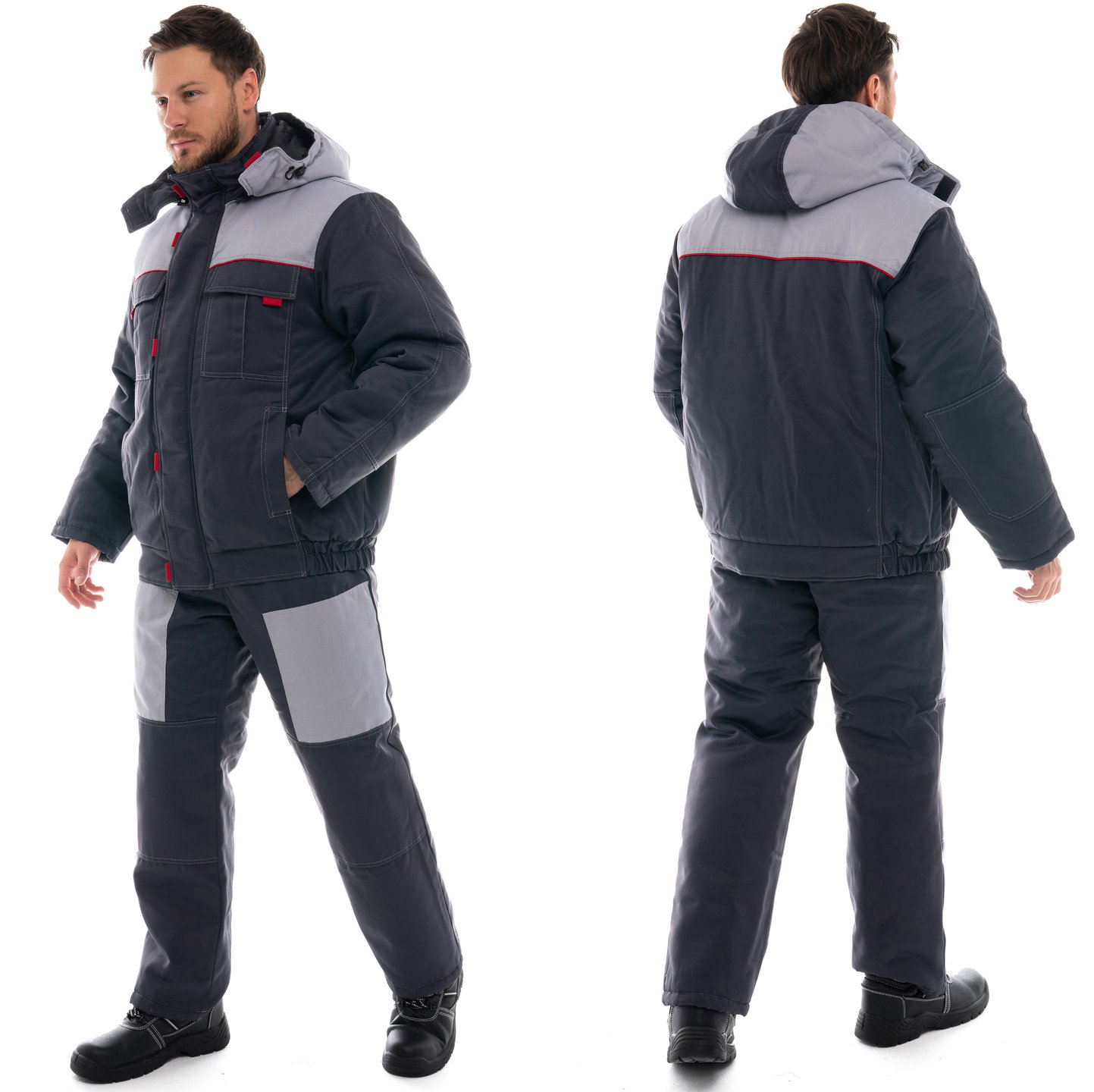 Зимний рабочий костюм Фаворит-2 представляет собой надежное решение для холодного времени года, состоит из куртки и полукомбинезона