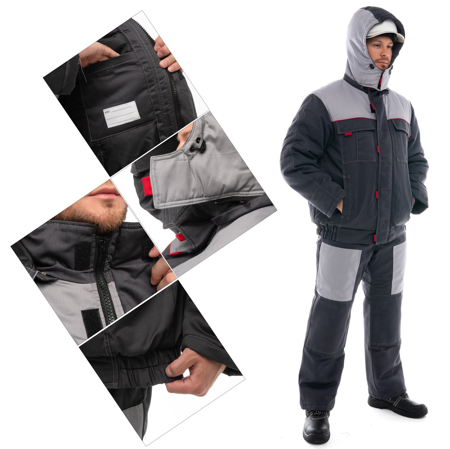 - Съемный капюшон можно регулировать по объему лицевой части и использовать с каской.