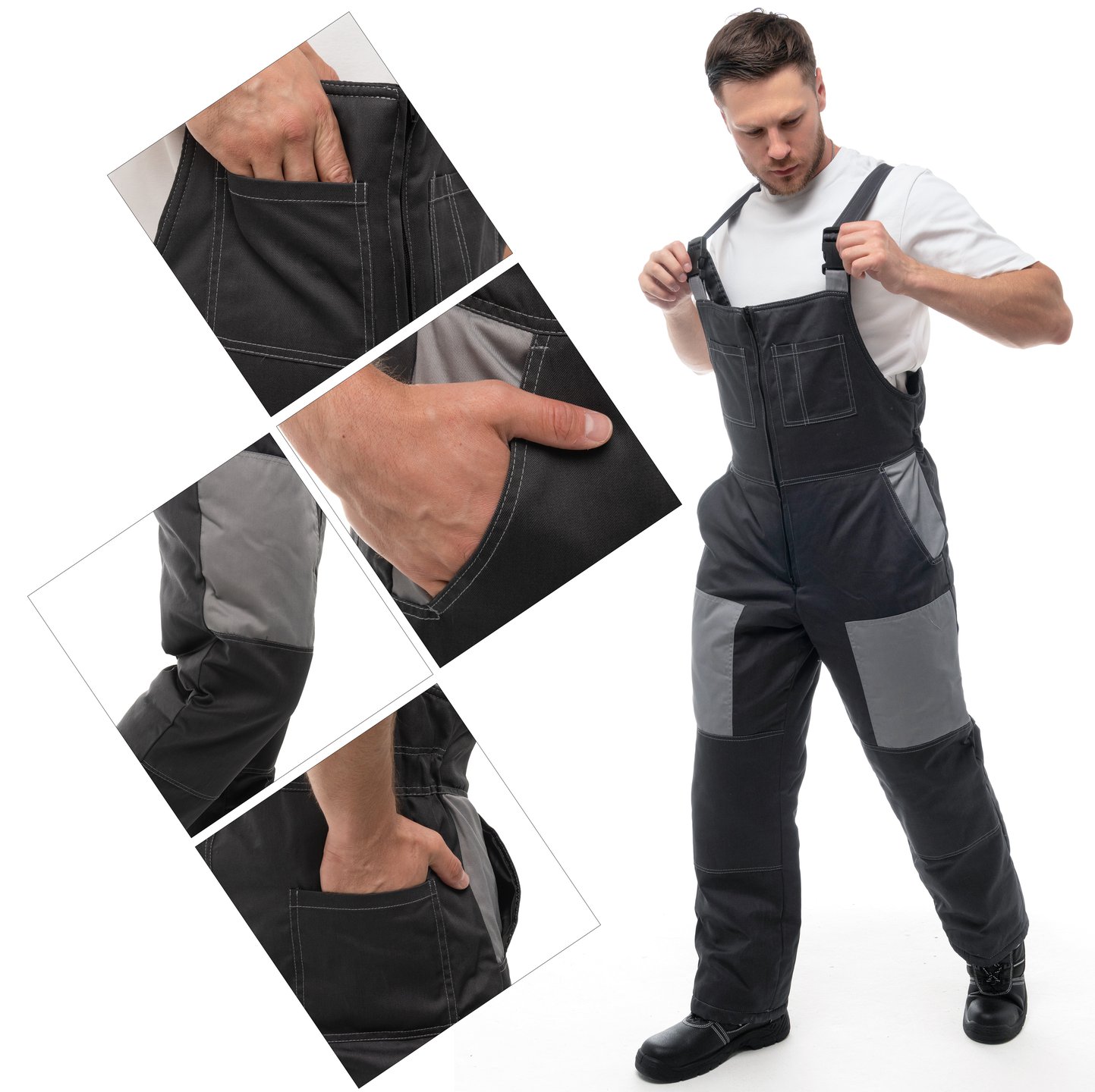 - В полукомбинезоне различные многофункциональные карманы для хранения мелочей.
