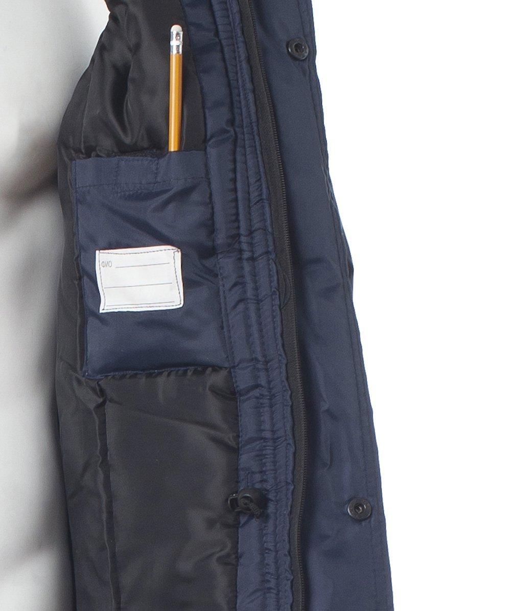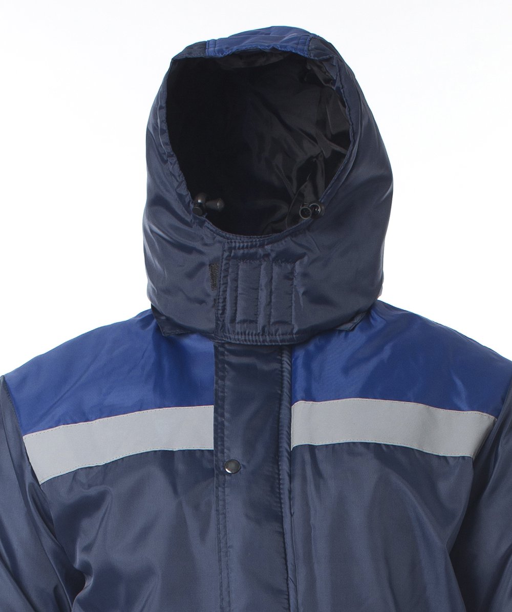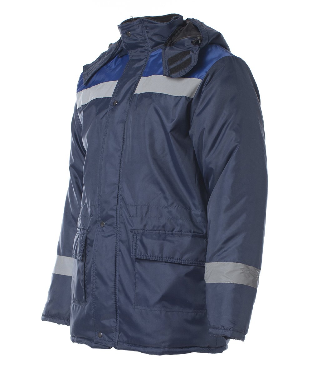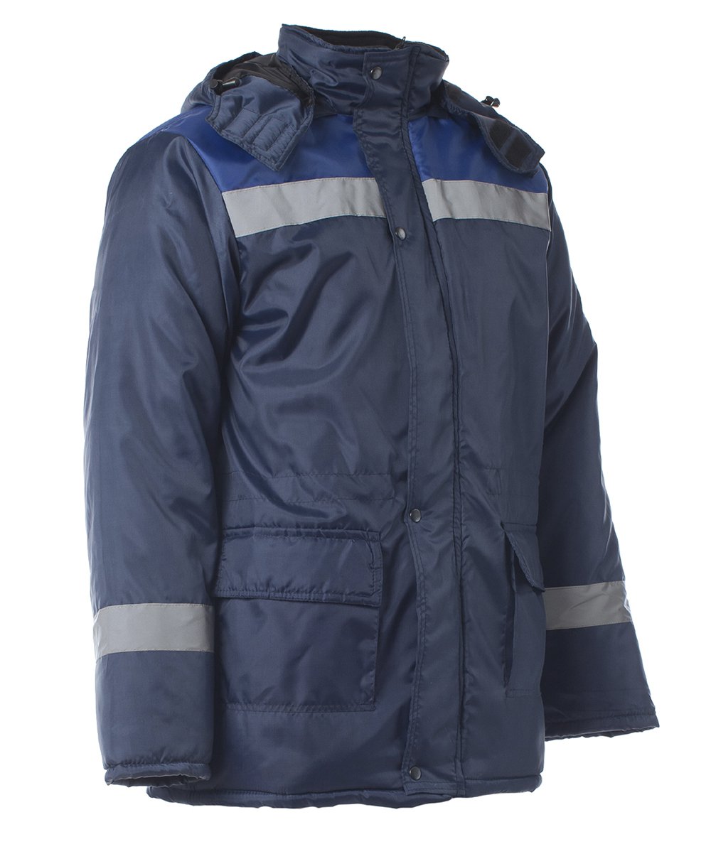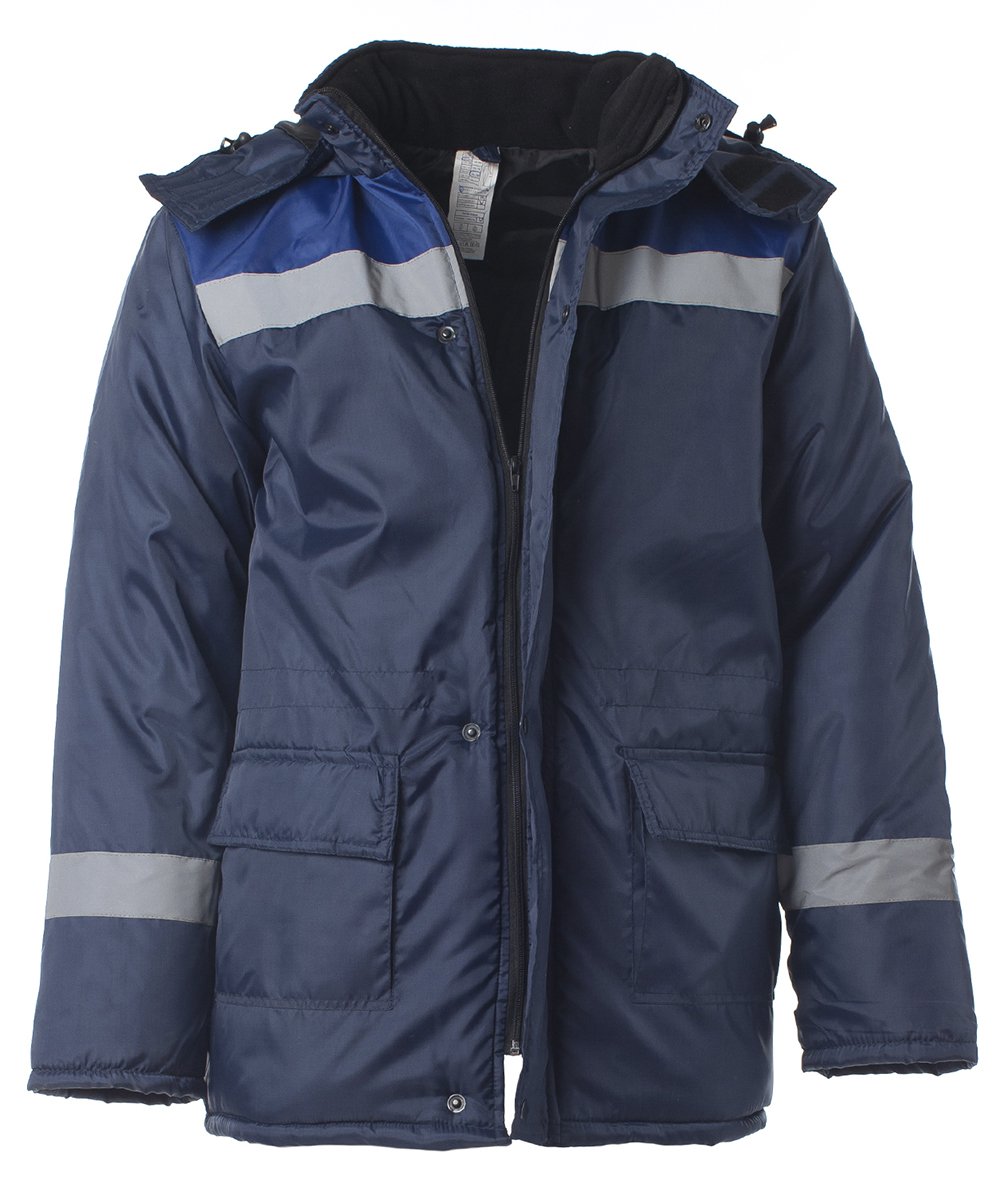 - Для безопасной работы сотрудника в местах с плохим освещением на куртке предусмотрена световозвращающая лента шириной 50 мм.