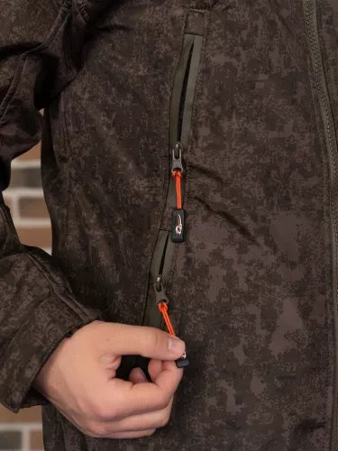 Куртка прямого кроя с капюшоном и удлиненной спинкой оснащена вентиляцией, а также функциональными карманами с влагозащитными молниями. Капюшон имеет удобный козырек и регулировки по объему.