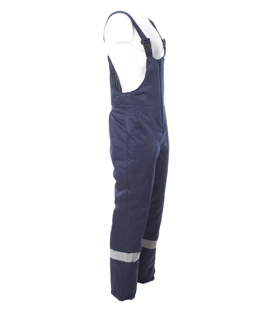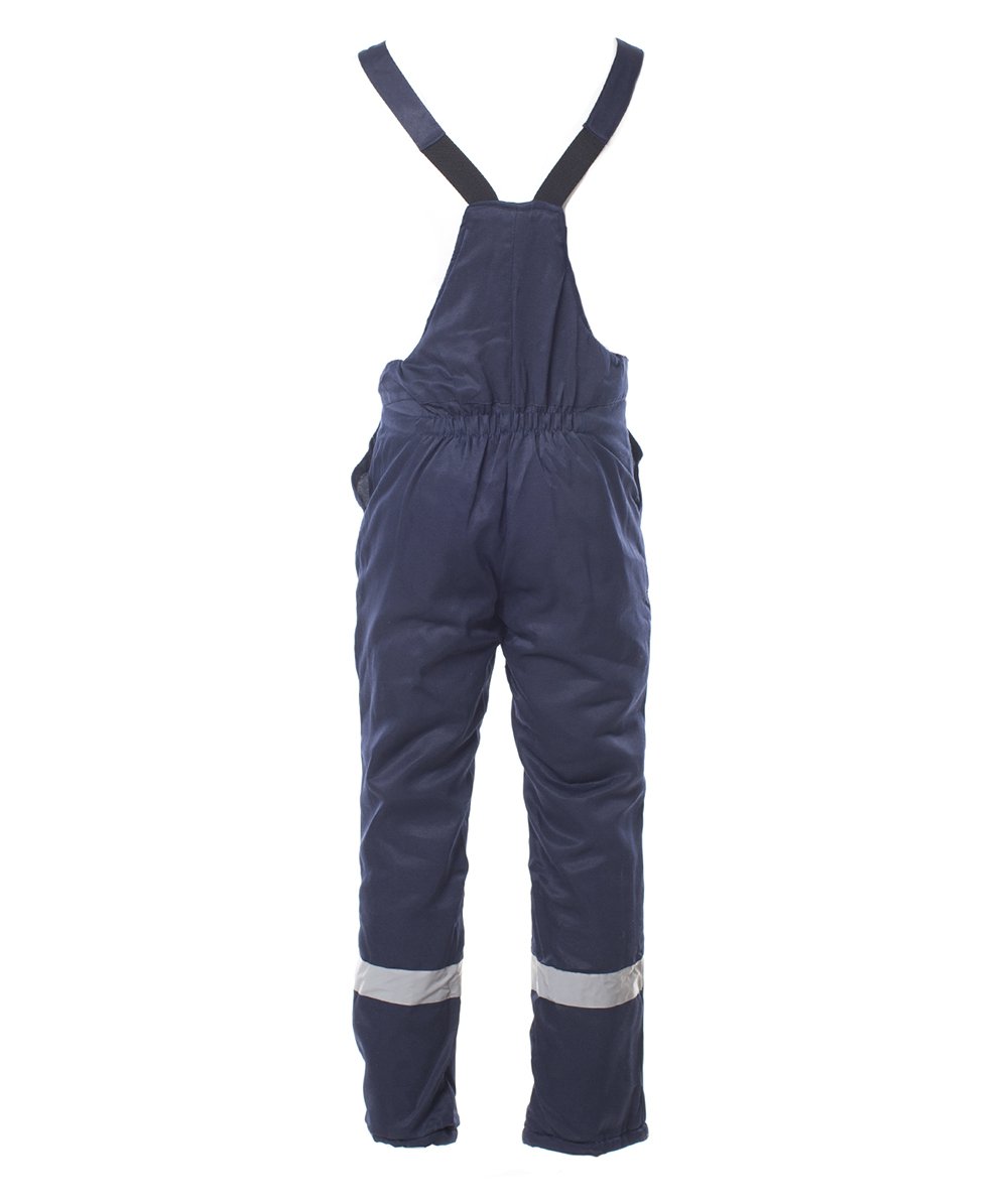 - Для безопасной работы сотрудника в местах с плохим освещением на полукомбинезоне предусмотрена светоотражающая лента шириной 50 мм.