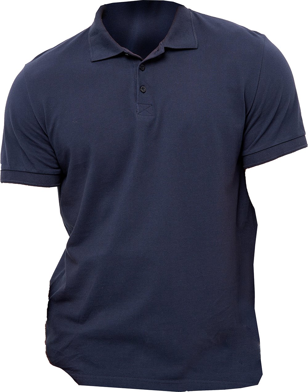 Рубашка поло прямого покроя, с коротким втачным рукавом, отложным воротником и планкой с застежкой из трех пуговиц в цвет полотна. Низ изделия с разрезами по бокам, подогнут и подшит плоским швом.