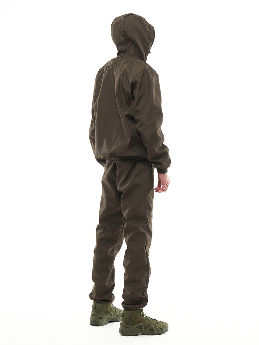 Внешний слой - это синтетический материал, с полимерной пропиткой. Он имеет много преимуществ, например, он прочный, устойчив к износу, не выцветает, быстро сохнет, не подвержен деформации. Полимерная пропитка делает материал ветроустойчивым и отталкивает влагу. Поэтому, несмотря на отсутствие мембранного слоя куртка отлично подходит для выездов на природу или работ на загородном участке.