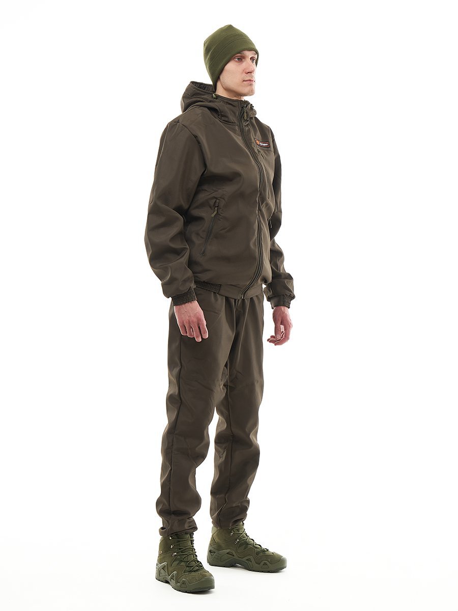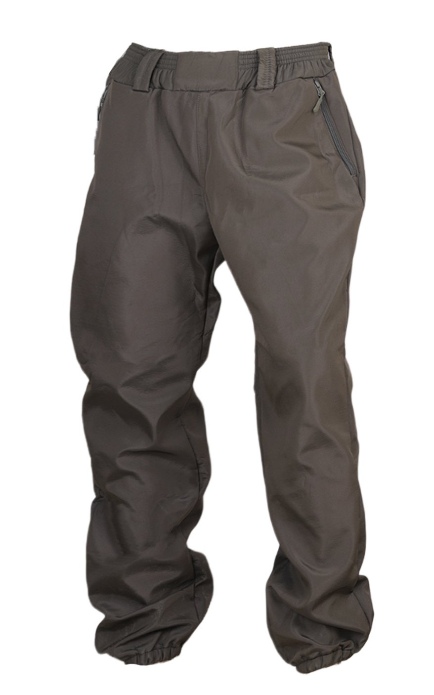 Внешний слой - это синтетический материал, с полимерной пропиткой. Он имеет много преимуществ, например, он прочный, устойчив к износу, не выцветает, быстро сохнет, не подвержен деформации. Полимерная пропитка делает материал ветроустойчивым и отталкивает влагу. Поэтому, несмотря на отсутствие мембранного слоя брюки отлично подходят для выездов на природу или работ на загородном участке.