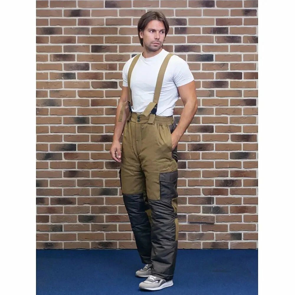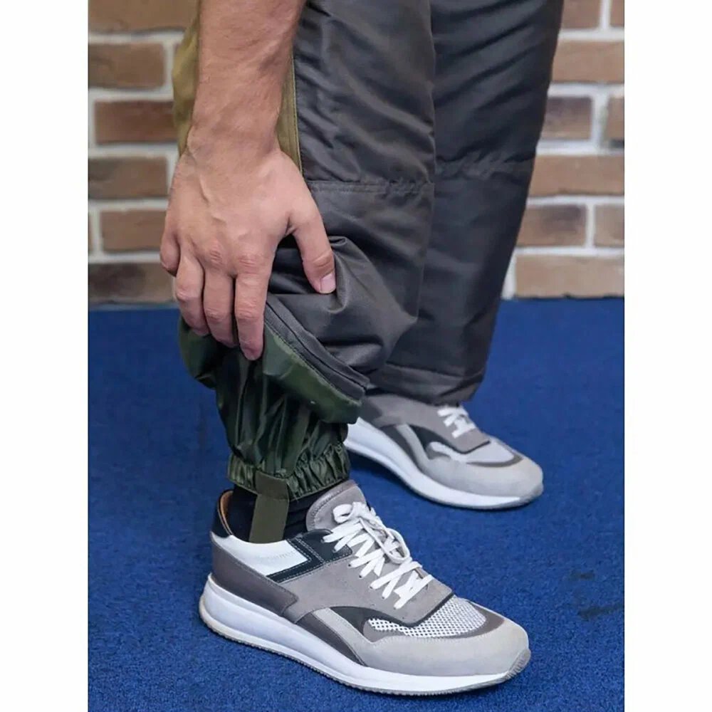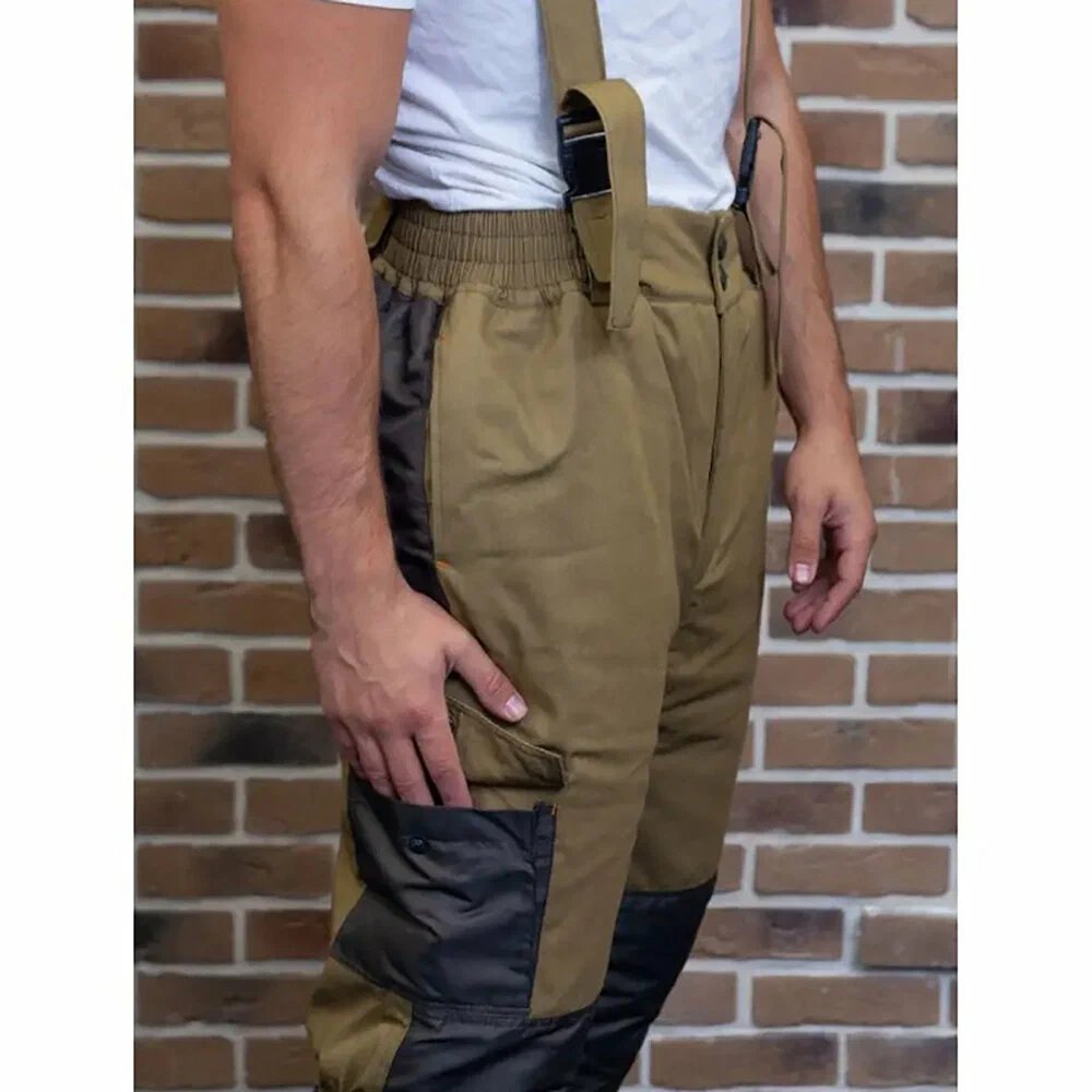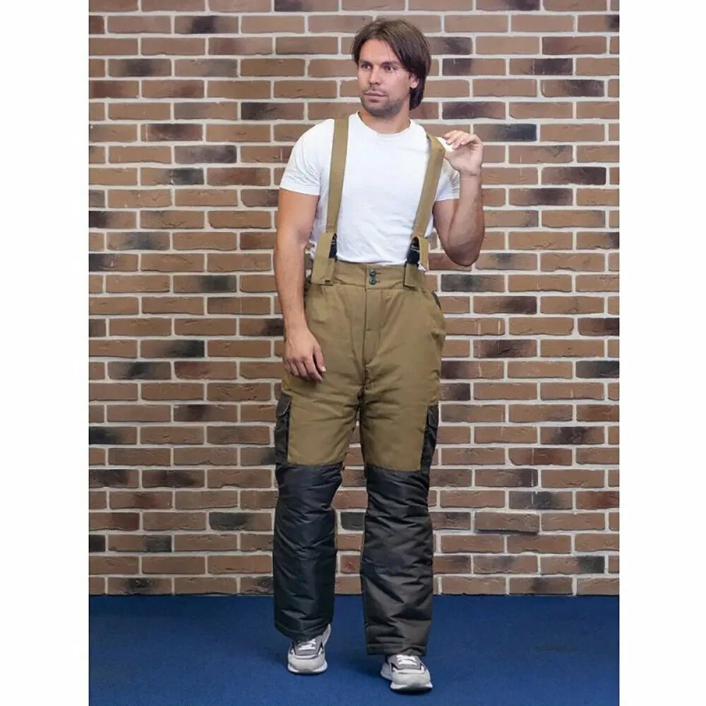 - Свободные брюки с элементами фиксации, резинка используется в поясе и нижних манжетах, в комплекте идут подтяжки