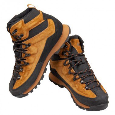 Верх ботинок сделан из натуральной замши и вставок из крепкого синтетического материала с водонепроницаемой и дышащей подкладкой APATEX. Дополнительное усиление по периметру всего ботинка обеспечивает дополнительную защиту от внешних воздействий. Встроенная в подкладку мембрана APATEX обеспечивает защиту от влаги и дышащие свойства обуви. Это позволяет поддерживать комфорт во время ношения.
