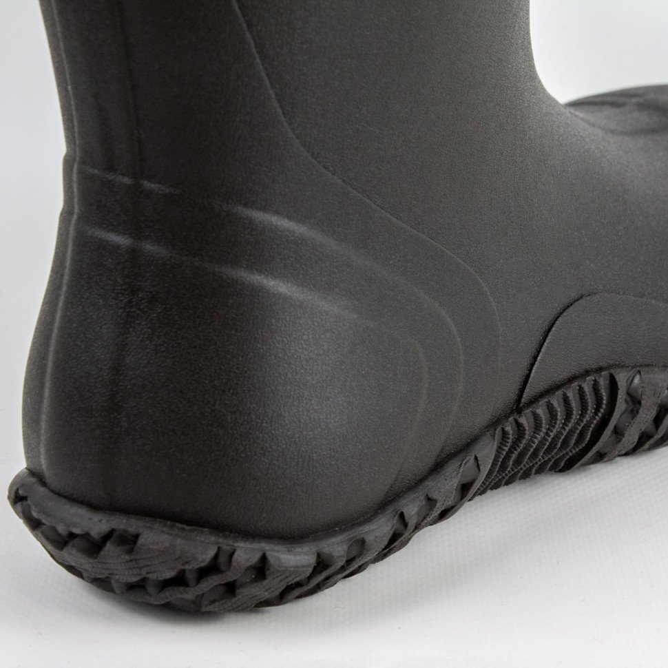 Верхняя часть сапог выполнена из неопрена. Это синтетический материал, известный своей эластичностью и водонепроницаемостью. Это делает сапоги удивительно легкими, позволяя носить их часами без ощущения усталости. Неопрен плотно облегает ногу, обеспечивая превосходную фиксацию стопы и предотвращая натирание.