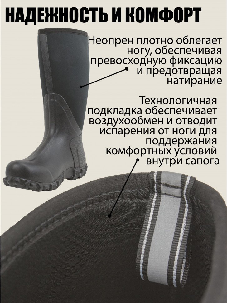 - Технологичная подкладка для поддержания комфортных условий внутри сапога