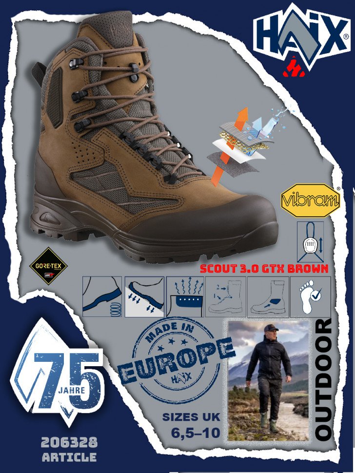 Третье поколение Haix Scout GTX достигает превосходных характеристик благодаря сочетанию высококачественных материалов и постоянно совершенствующихся технологий, обеспечивающих комфорт, влагоотведение и защиту стопы в сложных условиях. Эта обувь – отличный выбор для профессионального использования и серьезных любителей активного отдыха, которые хотят проводить длительное время на открытом воздухе.