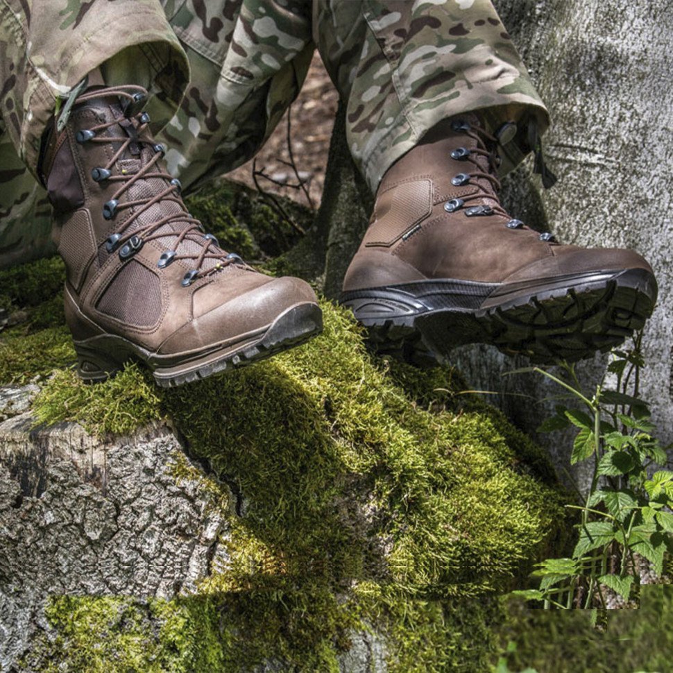 Высокие треккинговые ботинки Haix Nepal Pro из водоотталкивающего нубука толщиной 2–2,2 мм с текстильными элементами с трехслойной мембраной GORE-TEX® Extended полностью водонепроницаемы и паропроницаемы.