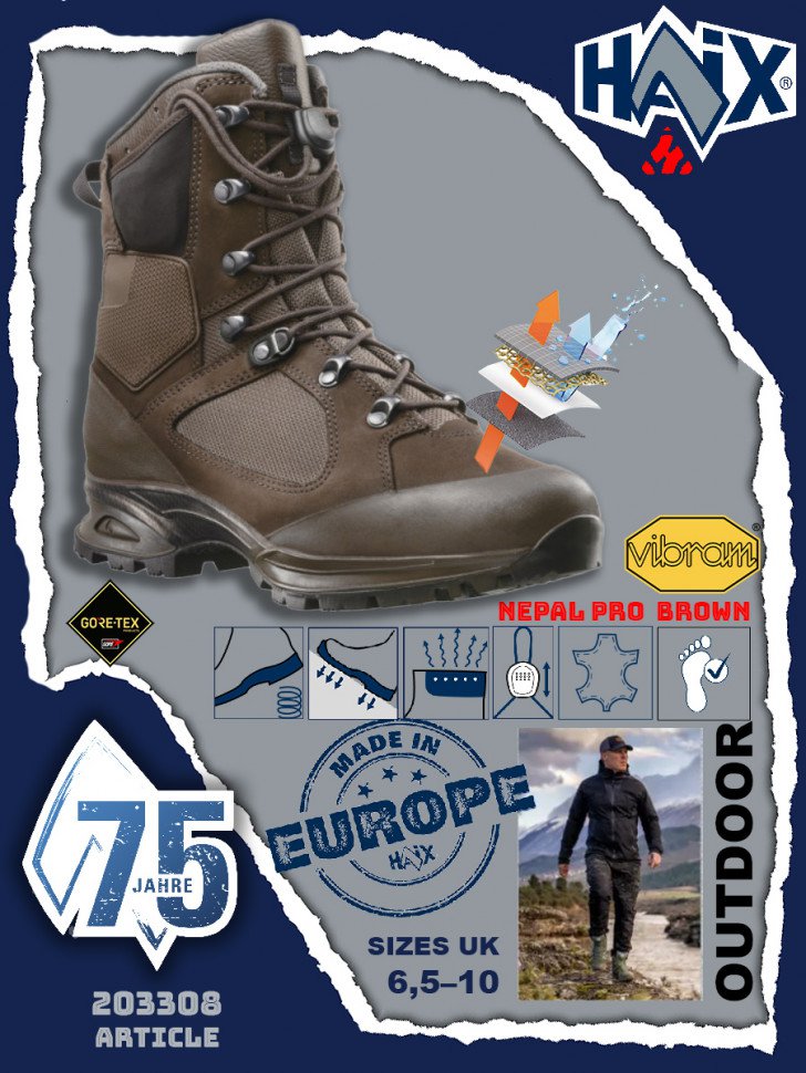Haix Nepal Pro отвечают всем необходимым требованиям тех, кто совершает длительные пешие путешествия, а также соответствуют требованиям безопасности по сертификации: CE EN ISO 20347:2012 O2 HRO HI CI WR FO SRC.