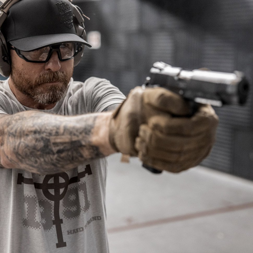 - Технология Padlock™ Silicone Grip на ладони улучшает качество контакта при обращении с оружием
