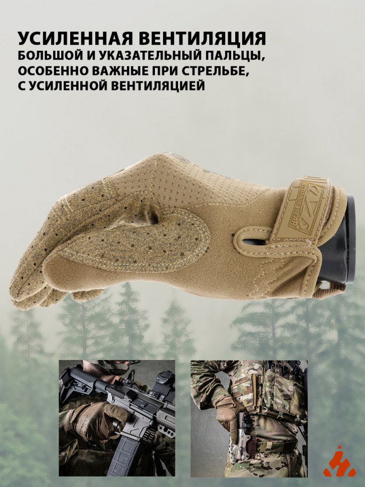 - Вентилируемые пальцы (большой и указательный, особенно важные при стрельбе, с усиленной вентиляцией)