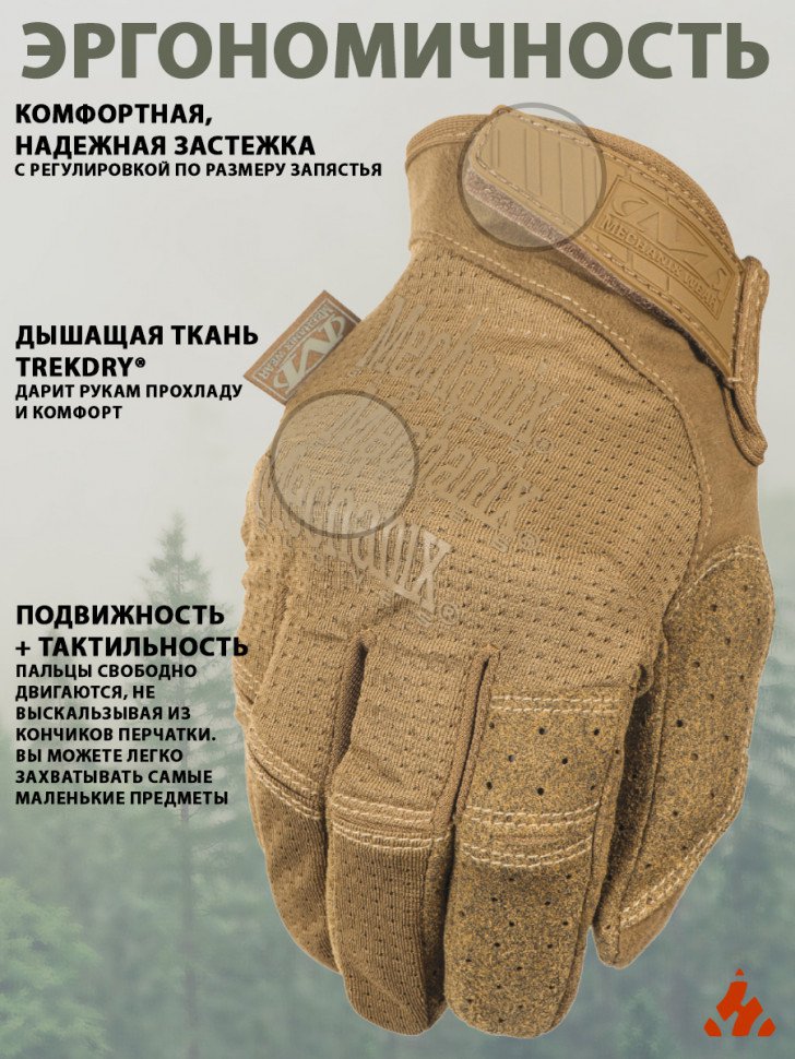 В перчатках Mechanix Specialty Vent Covert вы победите жару, куда бы вас ни занесло. Очень жаркие или влажные условия могут вызвать потливость рук, что приводит к потере ценного контроля над ситуацией. Специальные стрелковые перчатки Vent Covert обеспечивают испаряющееся охлаждение в условиях сильной жары благодаря полностью вентилируемой конструкции.