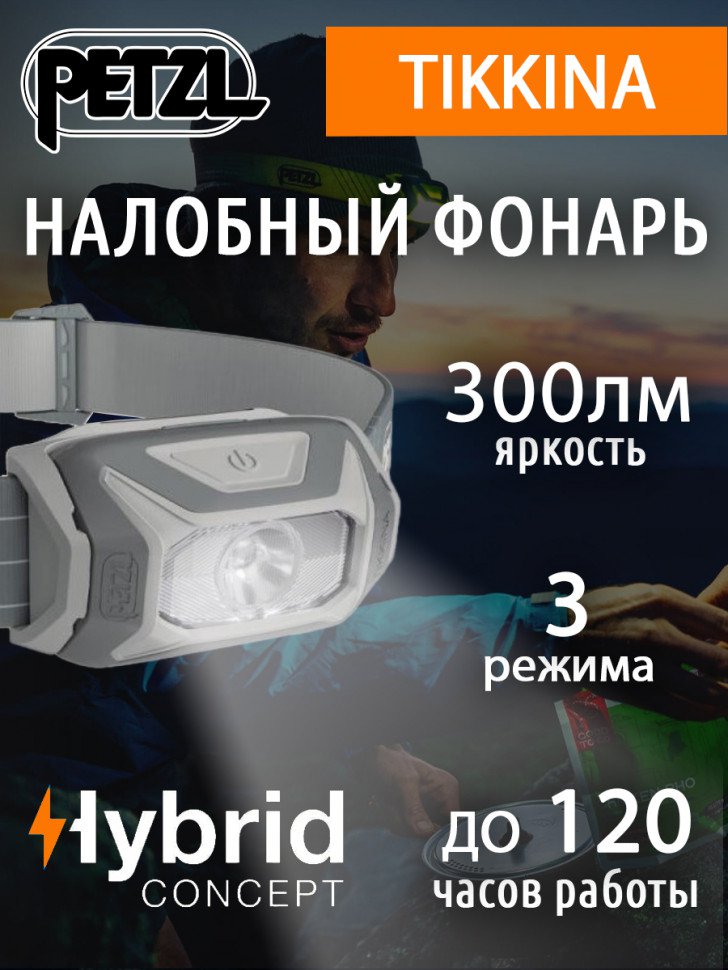 Фонарь налобный Petzl Tikkina (300 лм) серый