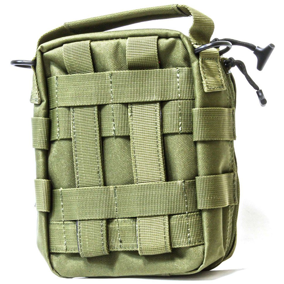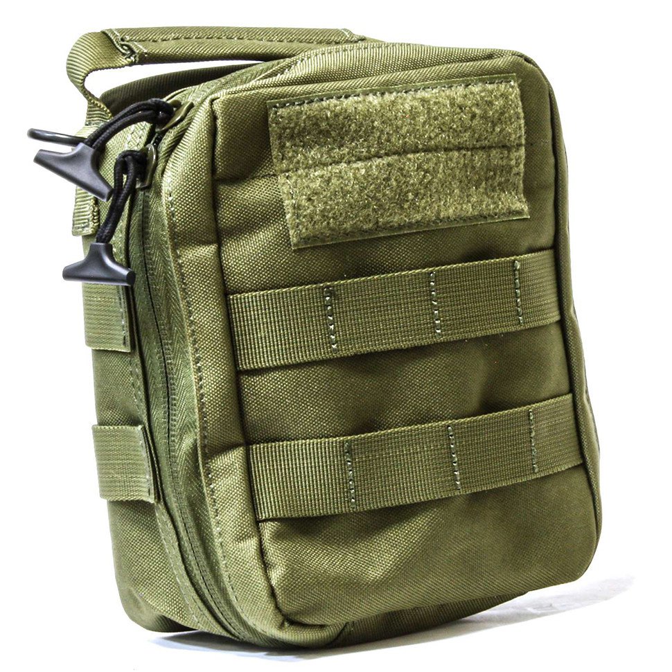Размер сумки идеально подходит для комплектации тактической аптечки выживания. Внутри сумки 2 кармана: один с молнией, а второй в виде сетчатой перегородки. Специальная компрессионная шнуровка и петли позволяют быстро собирать сумку или открывать ее как полку.