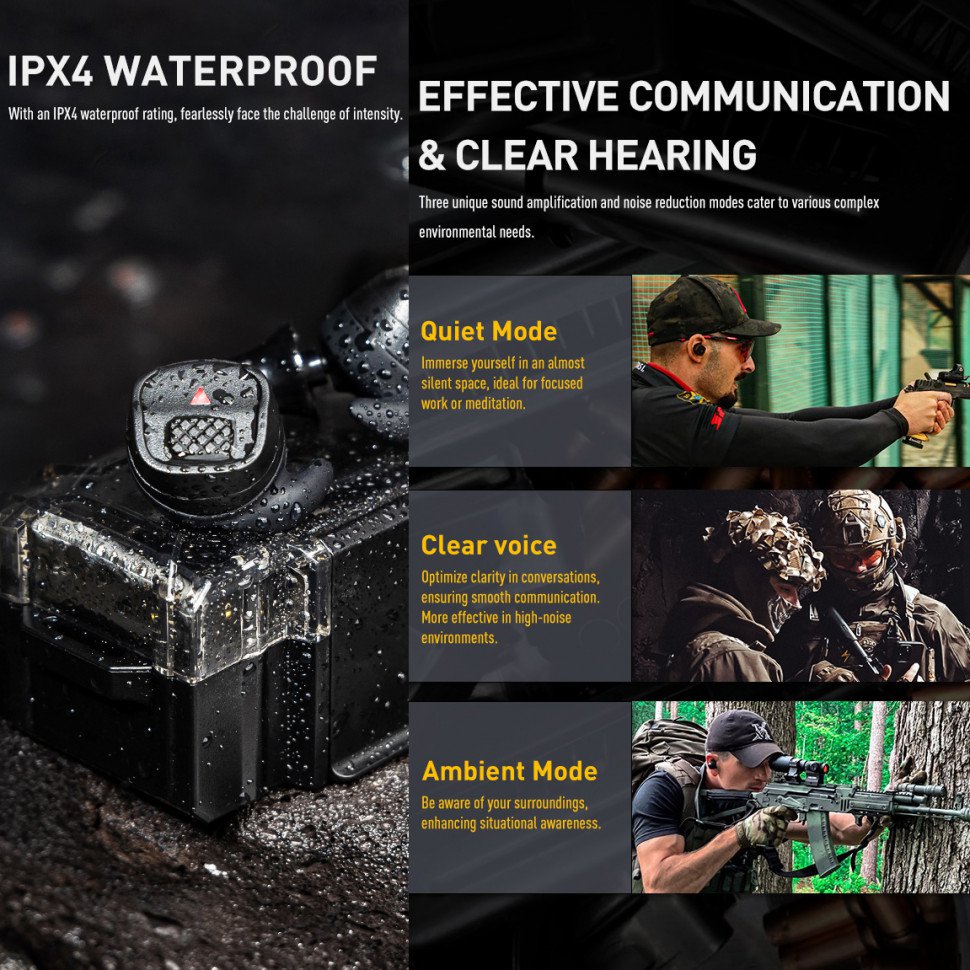 Активные беруши Earmor MT20T PRO предназначены для обеспечения надёжной защиты органов слуха. Они снижают громкие звуки выше 82 дБ, при этом позволяя комфортно общаться и взаимодействовать. Технология Clear Voice Tracking оптимизирует звучание речи и делает её более разборчивой. Используются во время стрельбы из огнестрельного оружия, при выполнении промышленных и строительных работ.