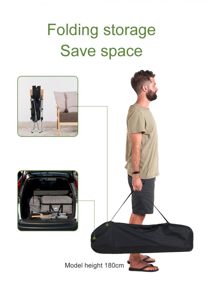 Туристическое складное кресло Naturehike с деревянными подлокотниками - уютный шезлонг для длительных путешествий и отдыха. Регулируемая по наклону спинка позволяет выбрать оптимально удобное положение.