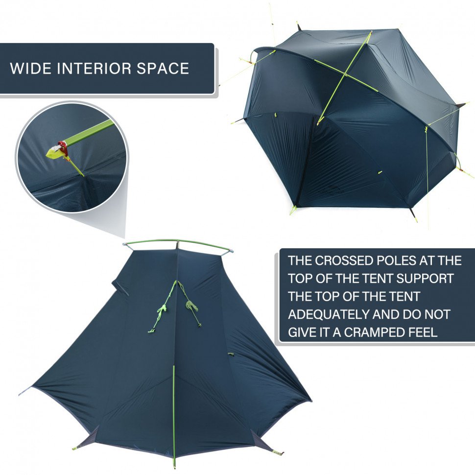 Отличительные черты серии Naturehike Tagar - быстрота установки и малый вес (1,5 кг) и объем. Палатка не боится мокрой погоды — силиконовое основание сохранит внутреннее содержимое в сухости. Специальные клипсы подвеса позволят максимально быстро установить палатку.