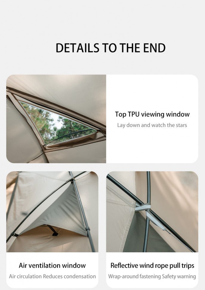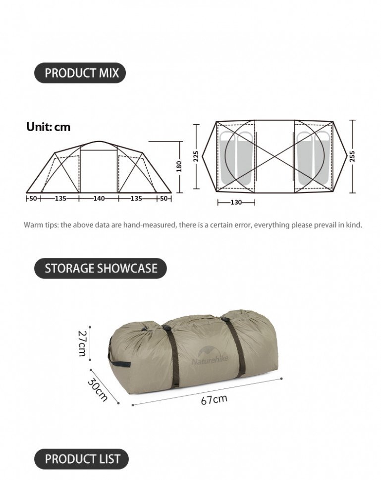 Двухслойная дверь, вентилируемая и защищенная от комаров. Naturehike Shandi - просторная кемпинговая палатка для отдыха большой компанией. Палатка имеет четыре входа для удобного доступа с любой из сторон.