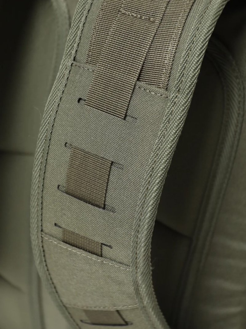 - Верхние оттяжки. Ячейки PALS для крепления подсумков выполнены методом лазерной резки в усиленной ткани, что обеспечивает лямкам тонкий профиль и плоскую поверхность, не мешая прикладке оружия. В комплекте съемная грудная стяжка с подрезиненной для комфорта стропой