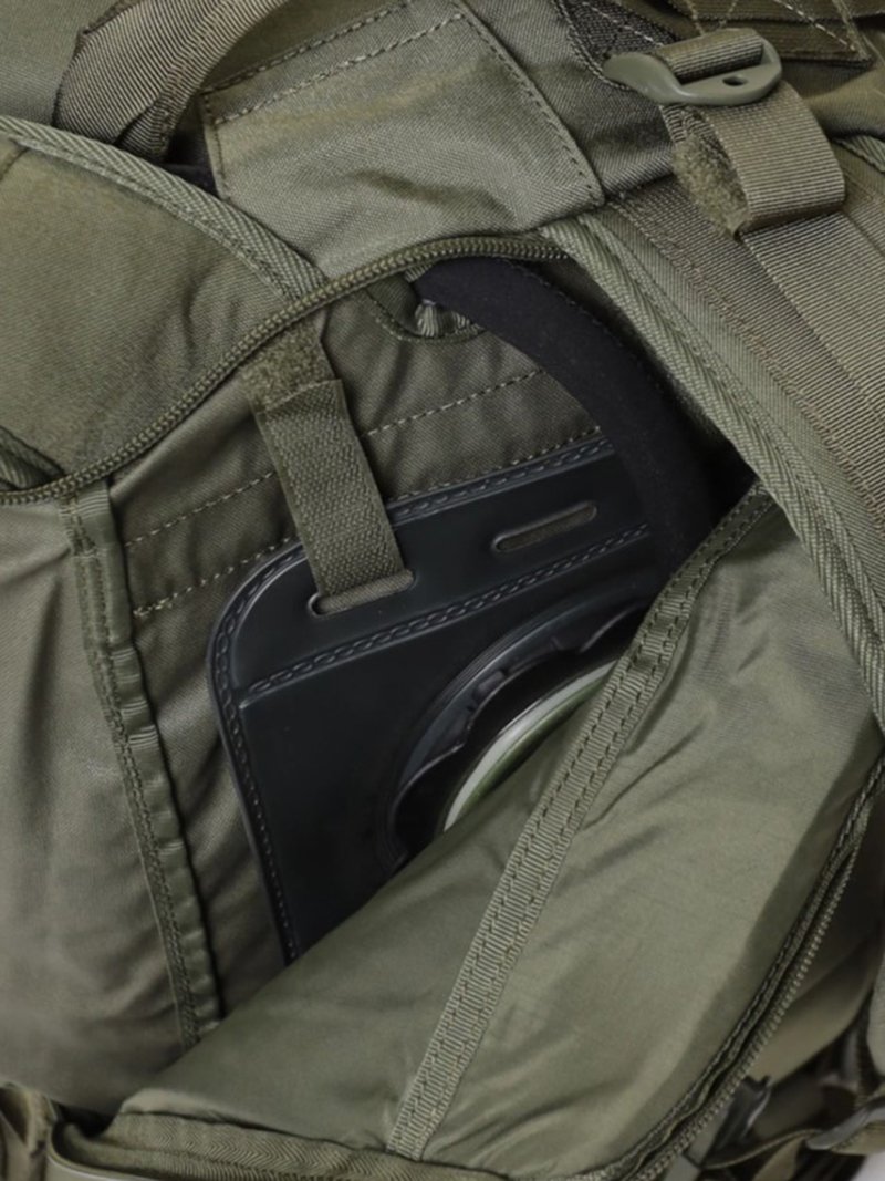 - Совместимость с питьевыми системами — в спине имеется отделение с внешним доступом на молнии для 3л гидратора, и две петли на липучках для подвеса. Трубка гидратора выводится внутрь главного отделения через отверстие, а оттуда наружу через специальный клапан сверху ранца. Питьевая система в комплект не входит!