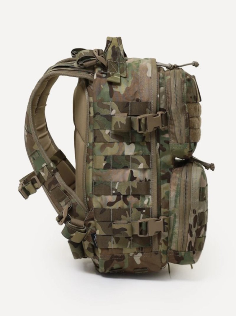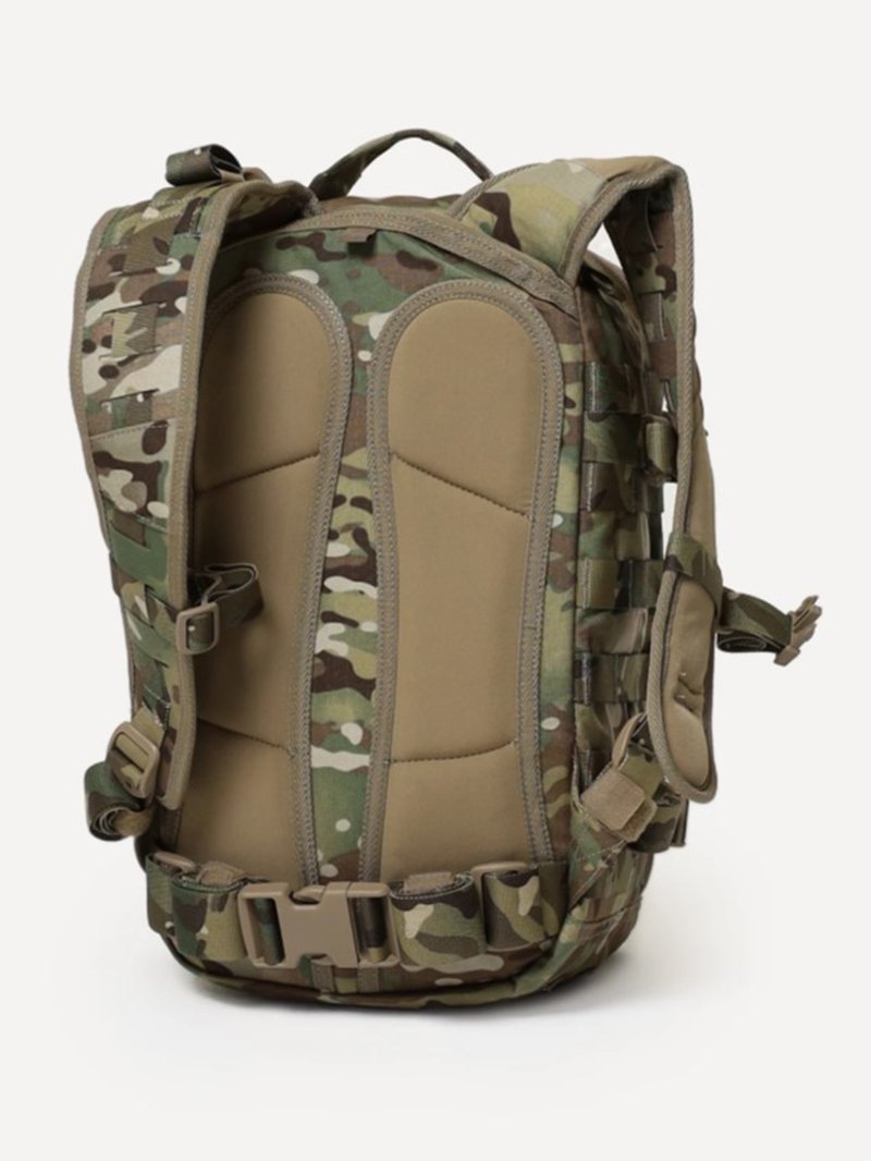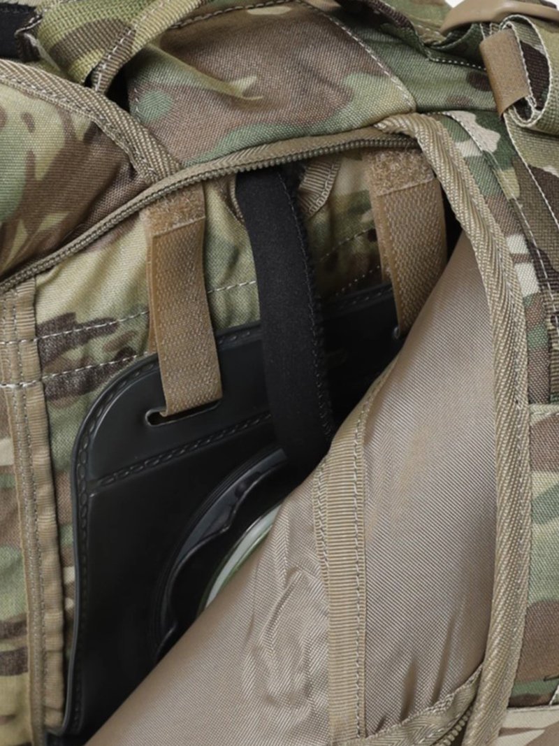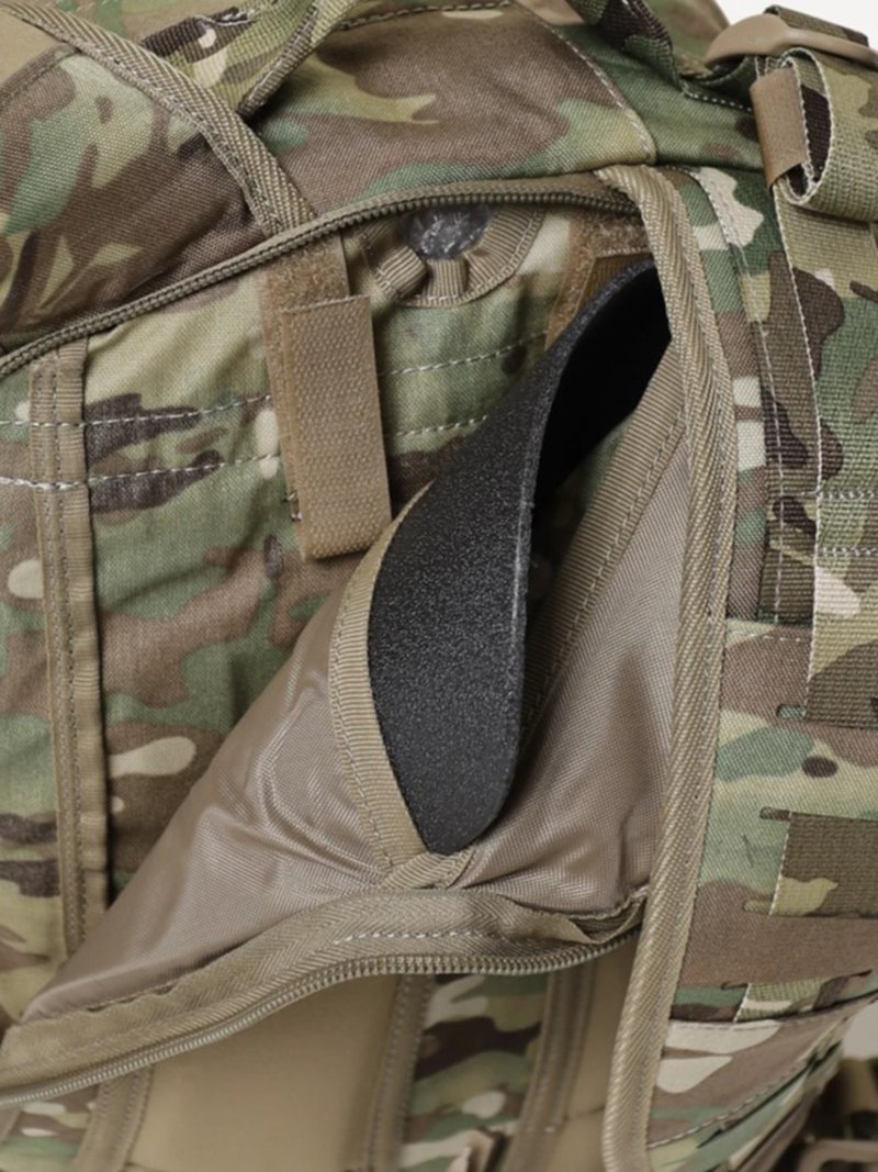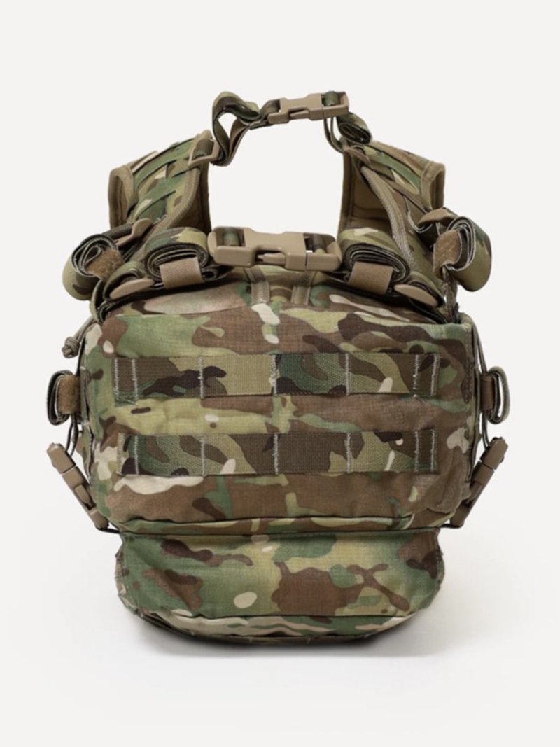 - Несъемные лямки с анатомическим силуэтом. Два слоя пены и сетка Airmesh для мягкости и вентиляции. Верхние оттяжки. Ячейки PALS для крепления подсумков выполнены методом лазерной резки в усиленной ткани, что обеспечивает лямкам тонкий профиль и плоскую поверхность, не мешая прикладке оружия