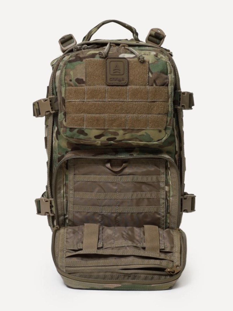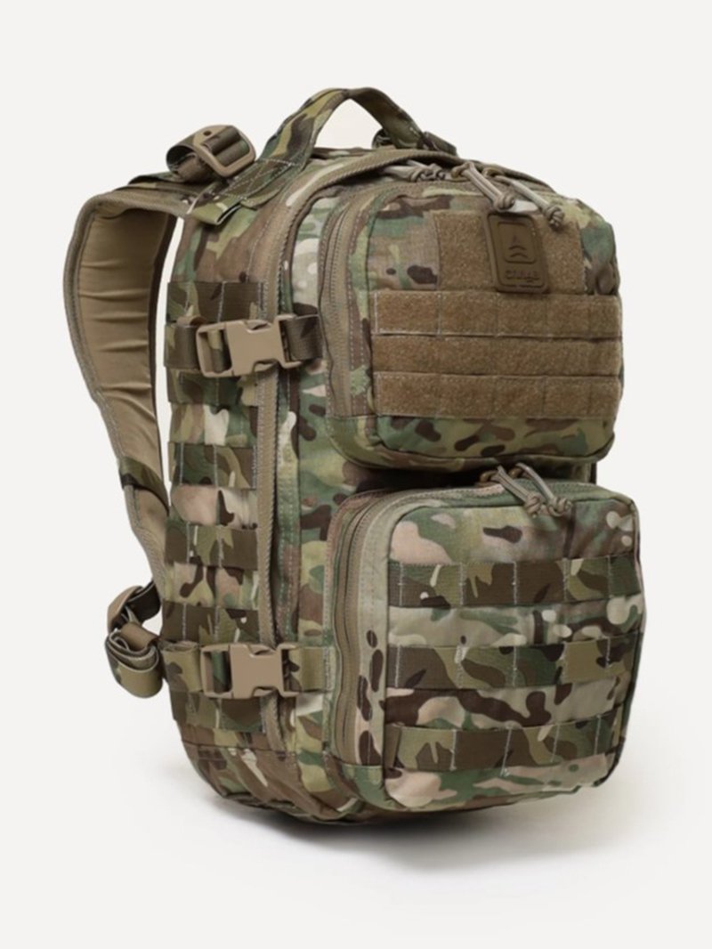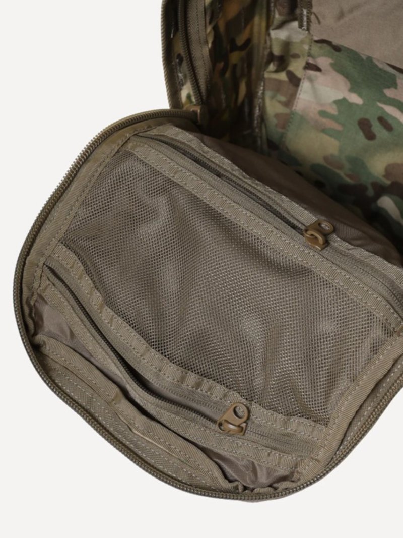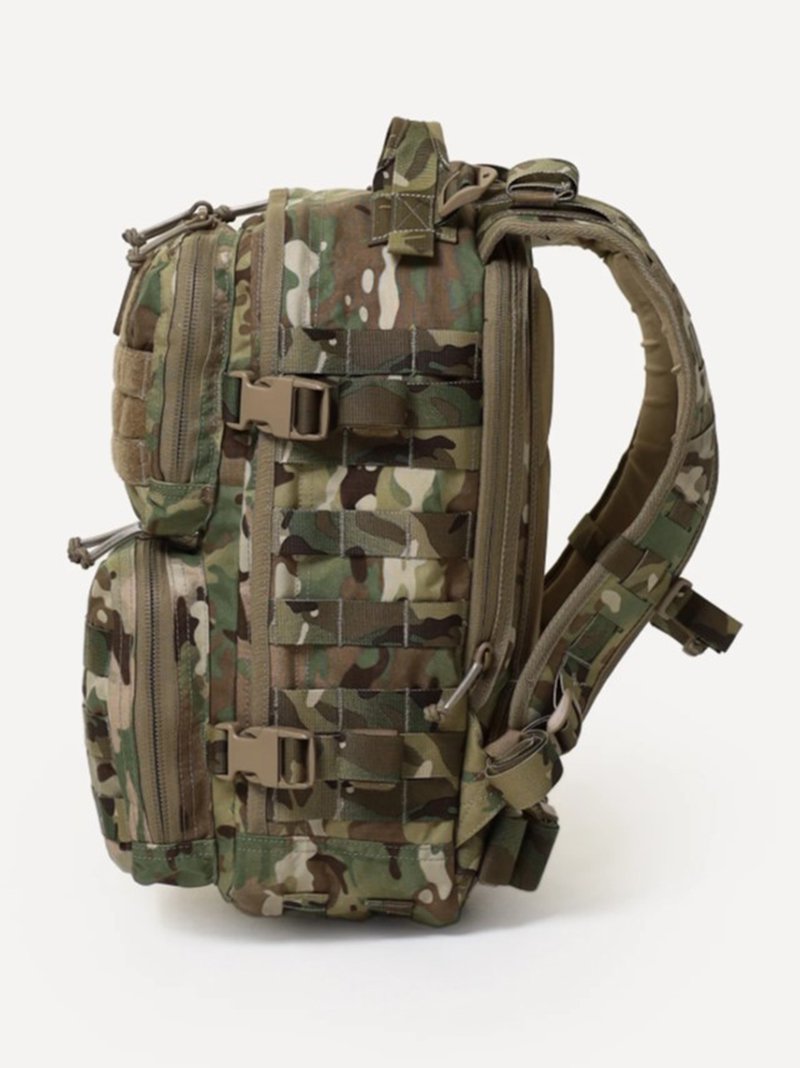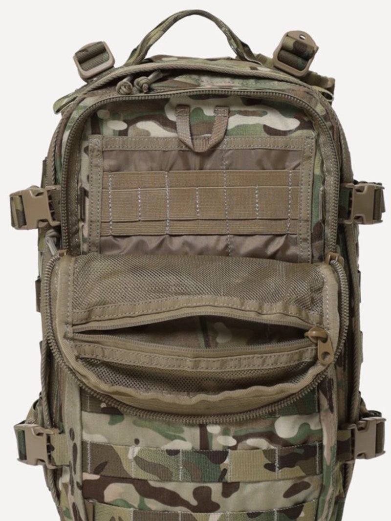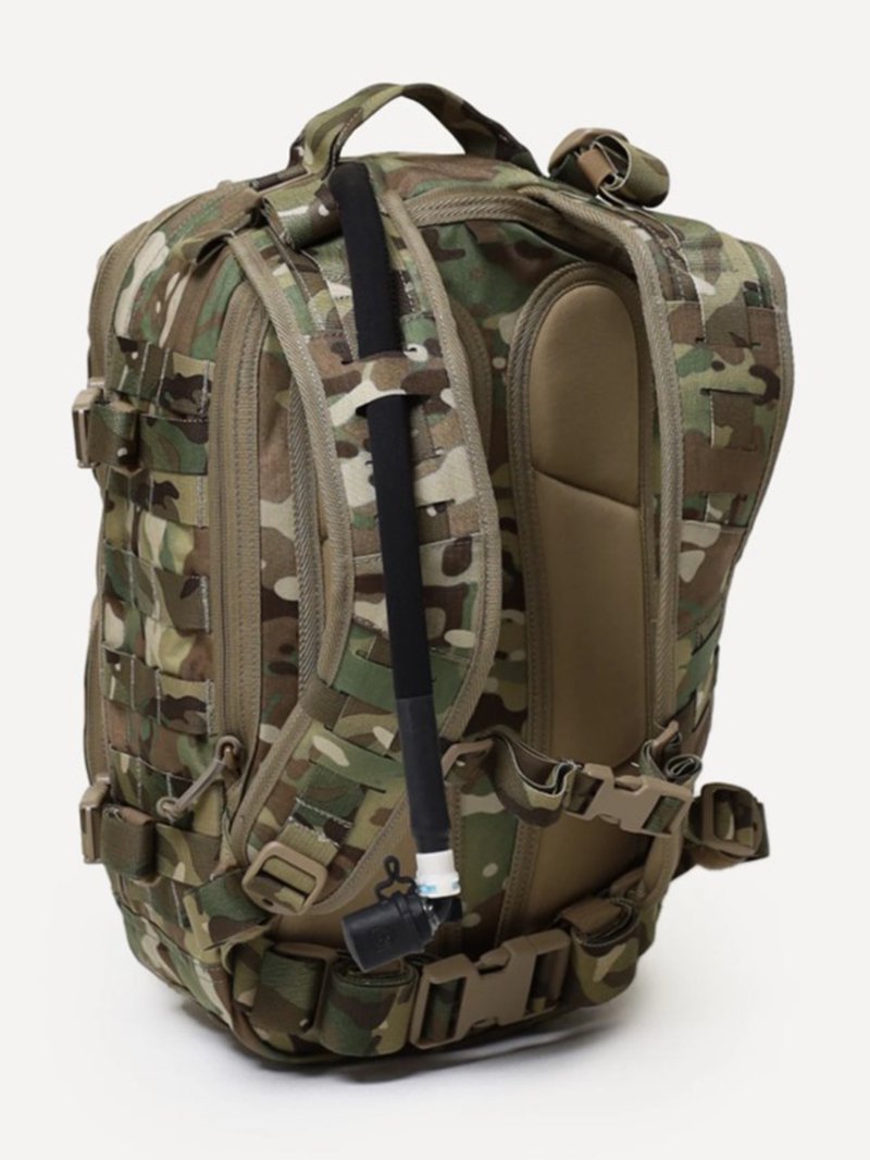 - Несъемные лямки с анатомическим силуэтом. Два слоя пены и сетка Airmesh для мягкости и вентиляции. Верхние оттяжки. Ячейки PALS для крепления подсумков выполнены методом лазерной резки в усиленной ткани, что обеспечивает лямкам тонкий профиль и плоскую поверхность, не мешая прикладке оружия