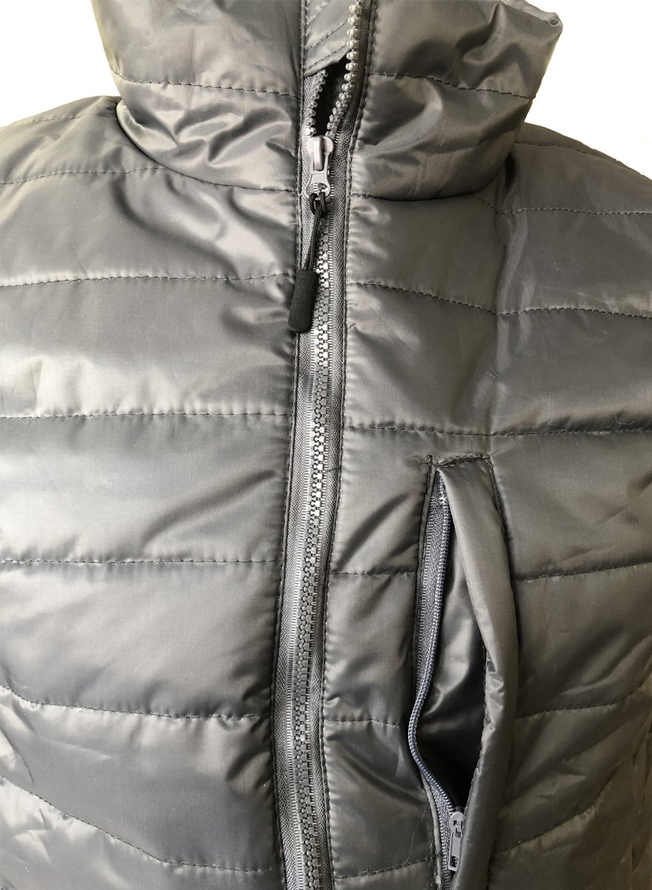 В модели расположен внутренний накладной карман и воротник-стойка на подкладке из флиса. Утеплитель «Слайтекс» помогает сохранить тепло. Карманы выполнены в листочку на молнию.