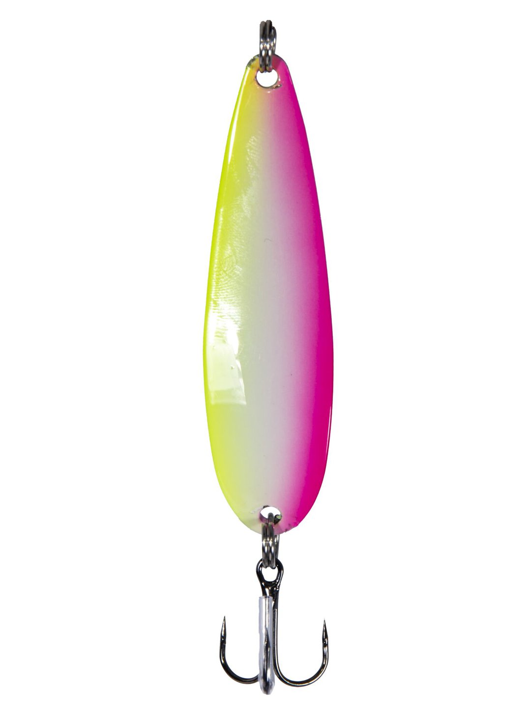 Блесна колеблющаяся Salmon выпускается в трех размерах. Разработана для ловли лососевых рыб при ловли на течении. Модель имеет три весовые категории: 14; 19 и 24 грамма, что позволяет подобрать модель блесны Salmon под разные условия ловли.