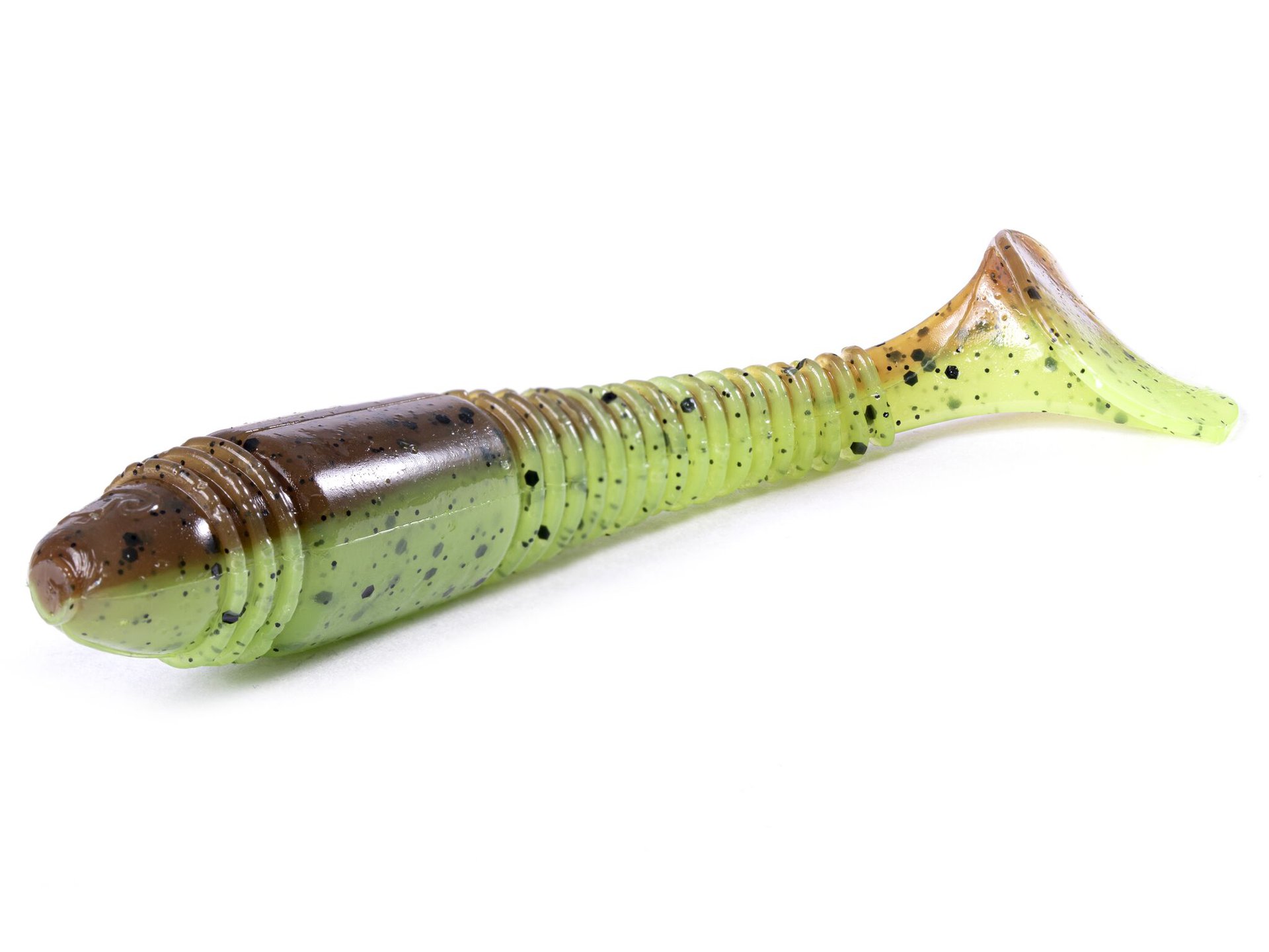 Гибридная приманка имеет червеобразное тело с характерным утолщением в передней части и небольшой хвостик-копытце от виброхвоста. За счет "мясистого" тела, приманку можно применять без передней огрузки в сильно заросшем водоеме.