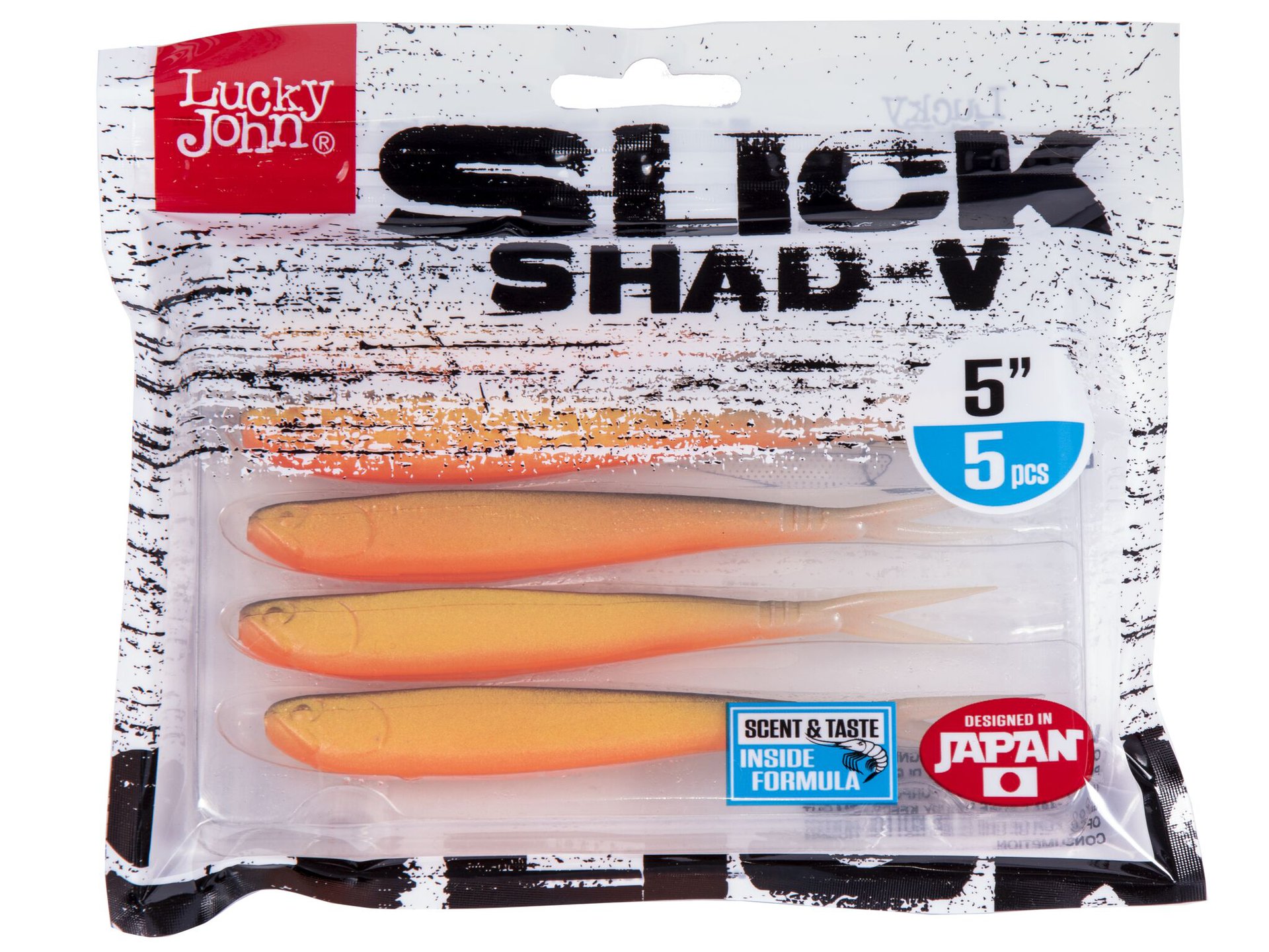 Предлагается мягкая приманка Slick Shad-V в размерах 12,70, 17,80 и 22,86 см. Соответственно, количество приманок в пачке 5, 3 и 2. С помощью этого силикона, спиннингисты могут ловить окуня или судака, населяющего закоряженные участки рек, а также, щуку, охотящуюся среди обильной водной растительности.