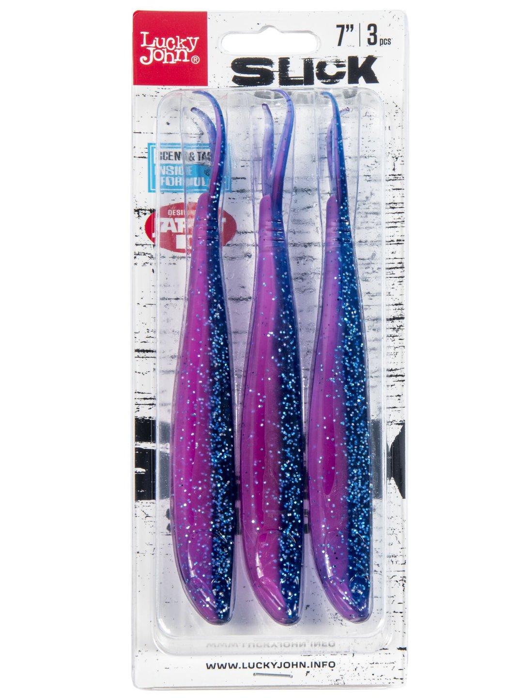 Предлагается мягкая приманка Slick Shad-V в размерах 12,70, 17,80 и 22,86 см. Соответственно, количество приманок в пачке 5, 3 и 2. С помощью этого силикона, спиннингисты могут ловить окуня или судака, населяющего закоряженные участки рек, а также, щуку, охотящуюся среди обильной водной растительности.