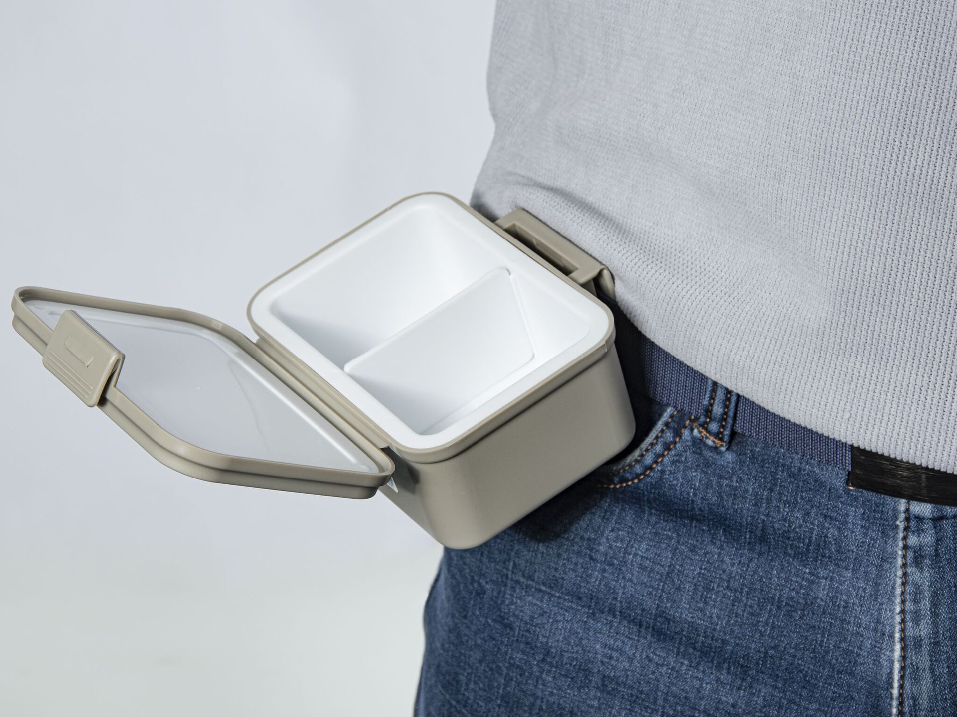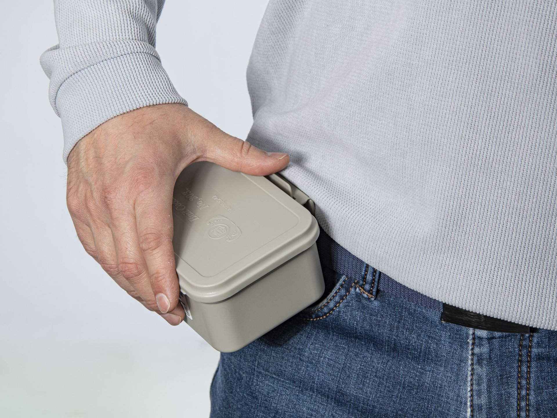 Быстросъёмное крепление позволяет надёжно фиксировать коробку на ремне брюк или поясной сумки, не расстёгивая его. Прочная застёжка исключает самопроизвольное открывание коробки, и обеспечивает сохранность содержимого.