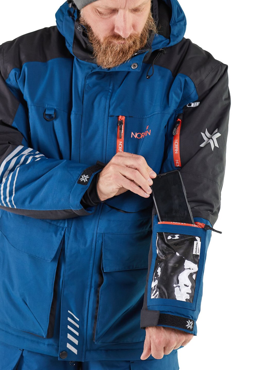 - Прозрачный карман на рукаве для доступа к навигации смартфона
