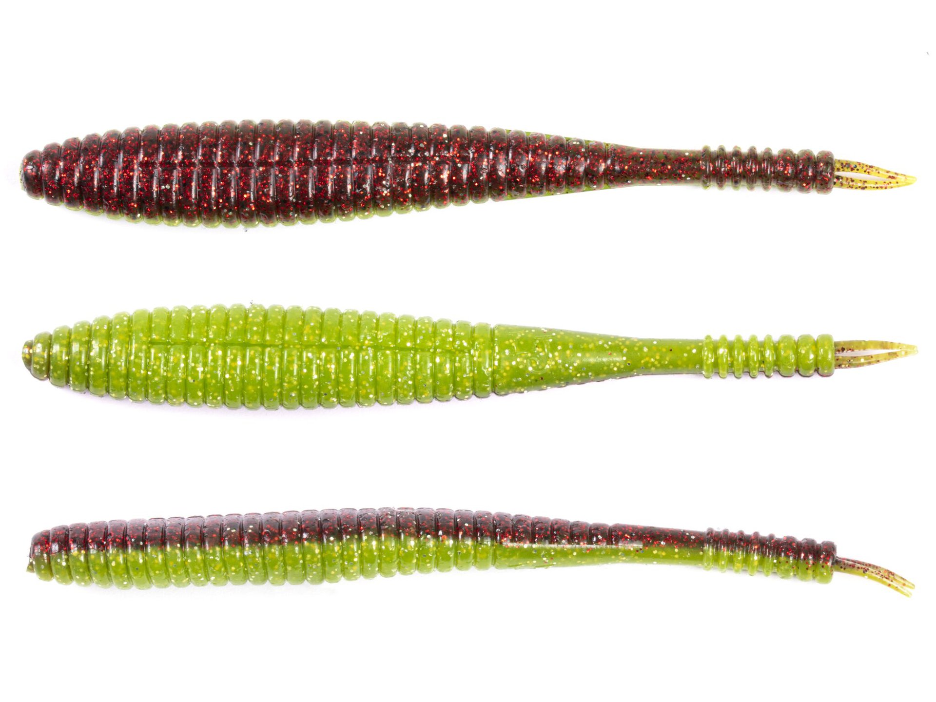 Больше всего приманка S-Shad напоминает пиявку среднего размера. Эту приманка относится к слагам и имеет вытянутое червеобразное плоское тело, сужающееся к хвостику. Хвостик немного утолщен, на конце которого два маленьких «щупальца». На спинке и брюшке приманки имеется карман, в который можно спрятать жало офсетного крючка.