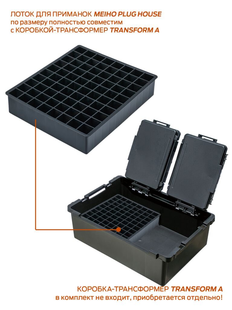 Вмещает 80 приманок. Является модульным элементом для коробки-трансформера Meiho Transform-A, которая в свою очередь является модульным элементом для ящиков VS-7090A, VS-7090N и BM-5000.