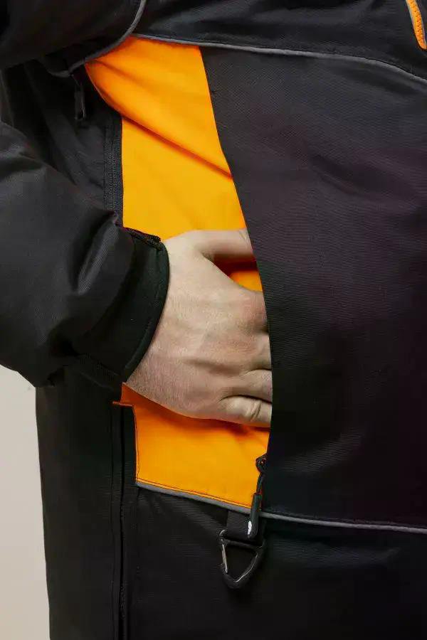 Капюшон с регулировками, высокий штормовой воротник, ветрозащитная юбка и снеговые манжеты препятствуют проникновению холода.