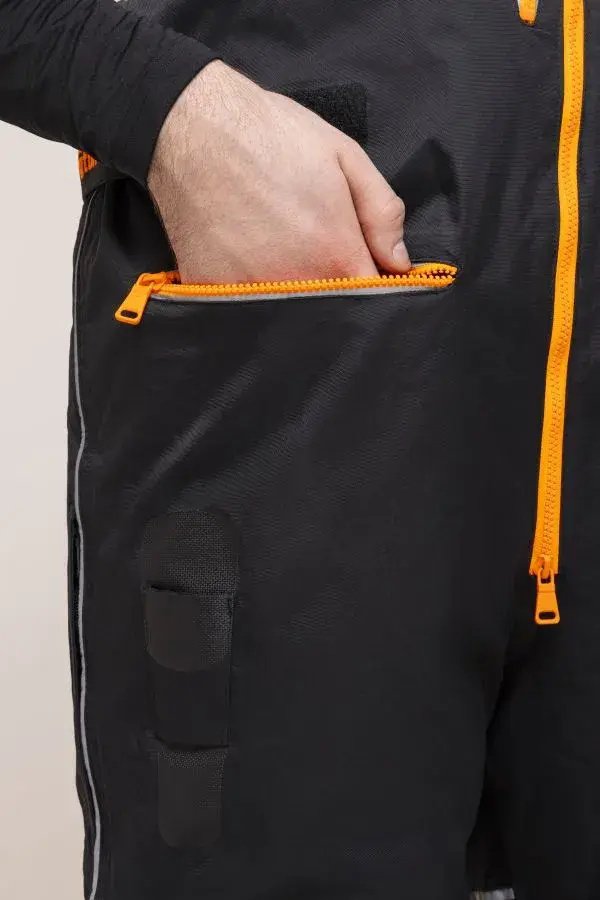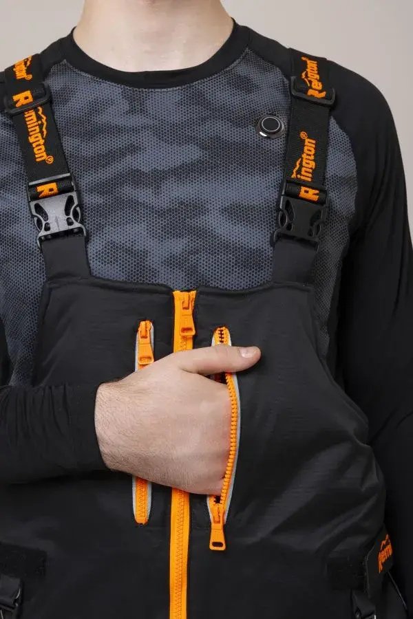 11 карманов: в куртке - 7, в полукомбинезоне - 4, крепления для снастей и камеры GoPro делают костюм Remington Mr.Ide Travel максимально функциональным.
