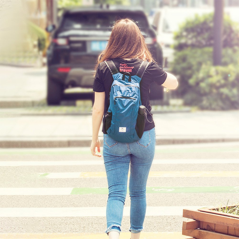 Вес рюкзака всего 120 граммов, и он легко складывается в компактный чехол размером 12 × 7 см, который помещается в ладони. Его можно взять с собой в поездки в качестве дополнительной сумки, он не займет много места в вашем багаже. В разложенном виде его габариты составляют 42 × 23 × 17 см, а объем — 18 литров, что достаточно для хранения всех необходимых вещей в поездке или на прогулке.